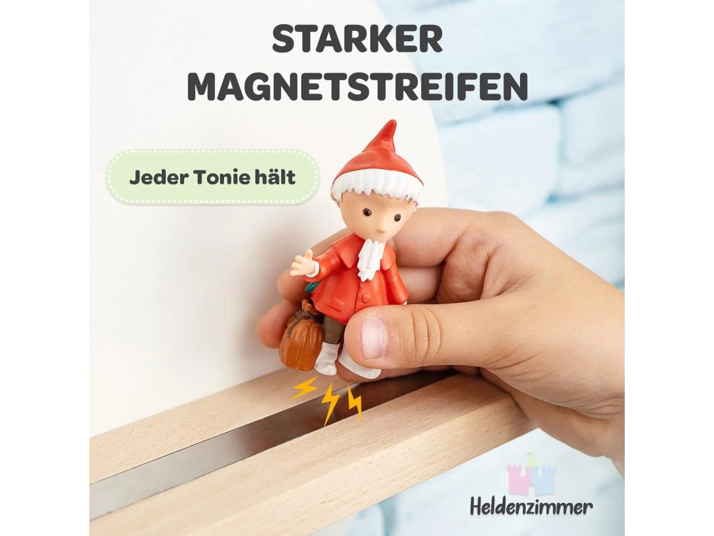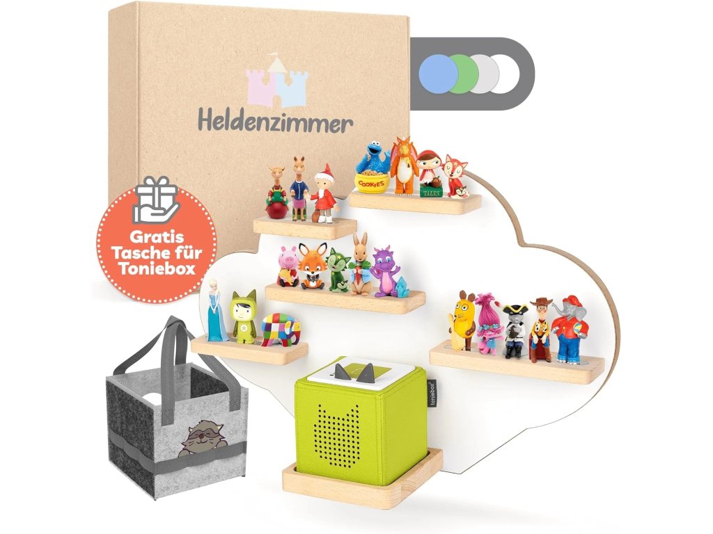 Bílá police ve tvaru mraku pro uložení až 30 figurek Tonies. Snadná montáž na zeď.