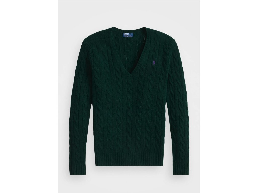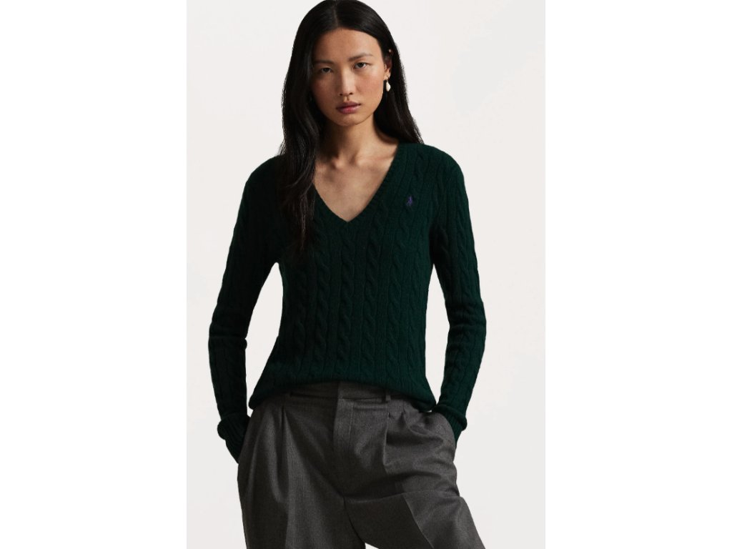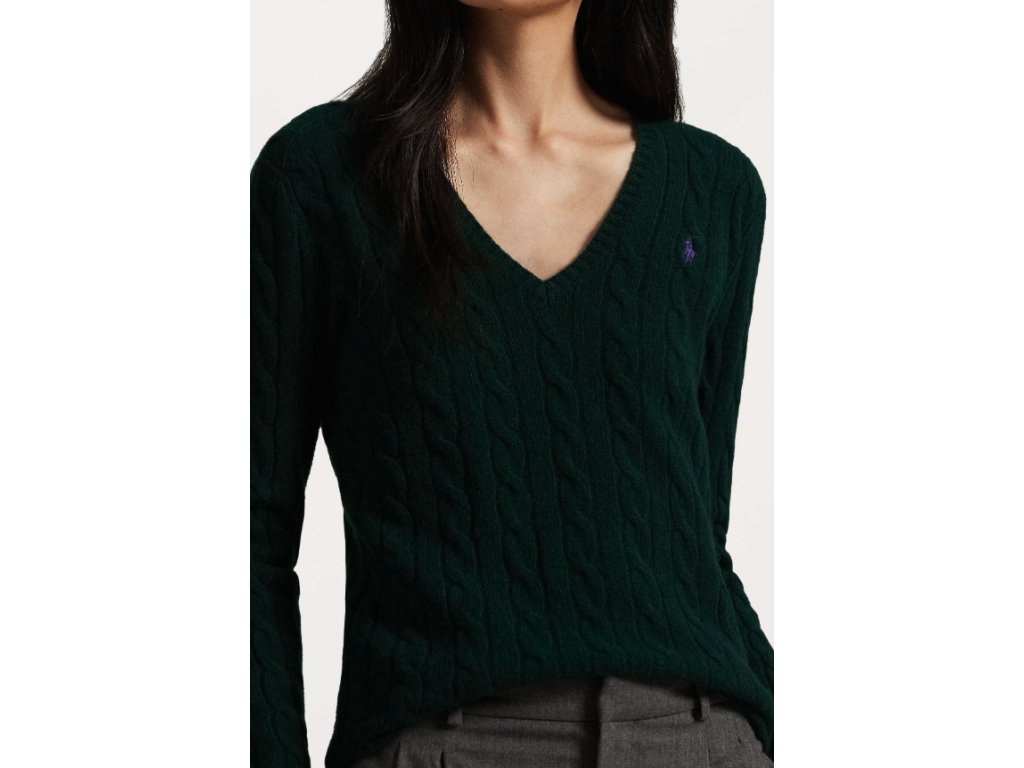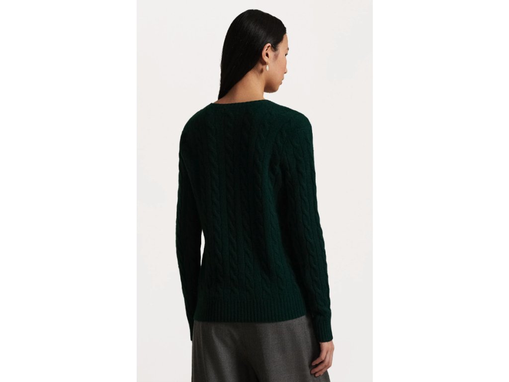 Polo Ralph Lauren Svetr s copánkovým vzorem Kimberly tmavě zelený velikost XS