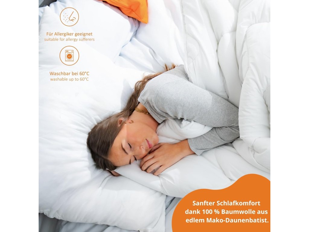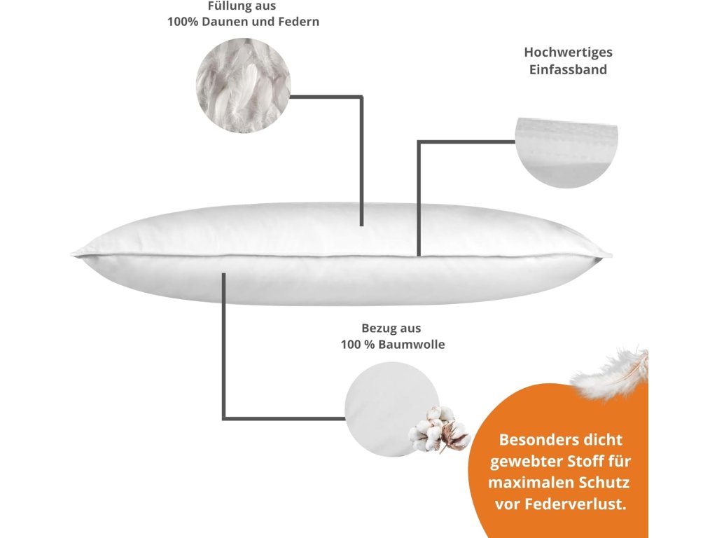 Tento péřový a prachový polštář o rozměrech 40 x 60 cm nabízí vysokou úroveň podpory pro pevný a klidný spánek. Má povlak ze 100% bavlny a lze ho snadno prát v pračce.