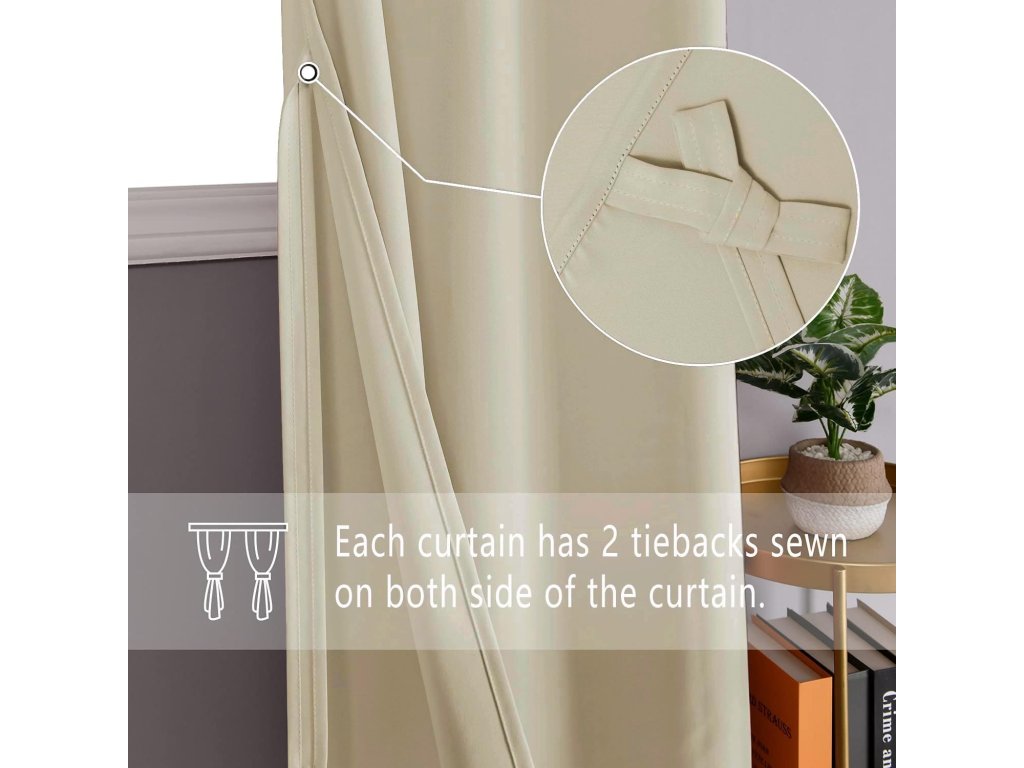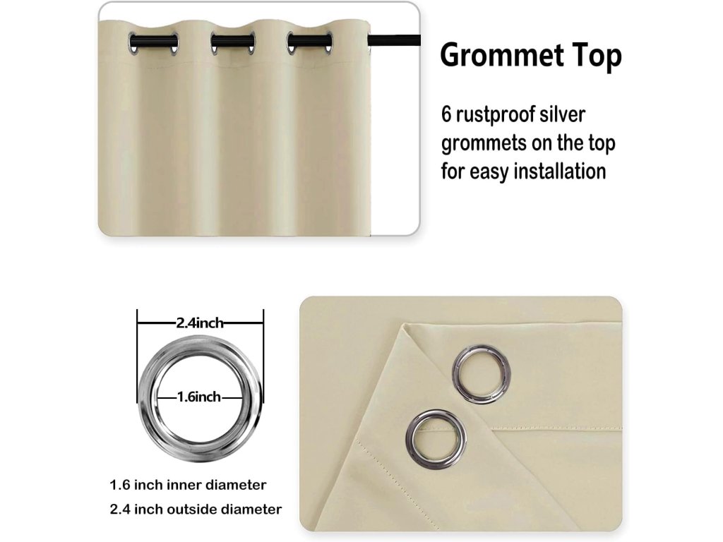 Balení obsahuje 2 kusy závěsů, každý o rozměrech přibližně 117 cm na šířku a 228 cm na výšku. Tepelný závěs je opatřen několika stříbrnými kovovými kroužky (vnější průměr 6 cm, vnitřní průměr 4 cm) v horní části, což zajišťuje velmi snadnou instalaci a plynulý pohyb po záclonové tyči.