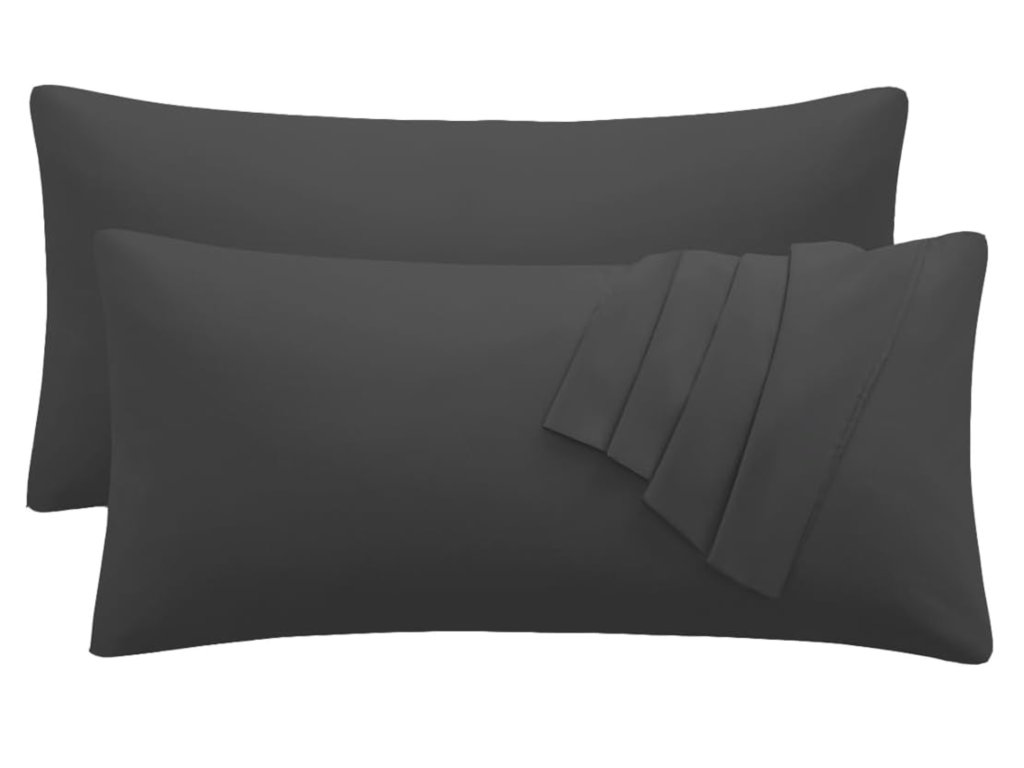Sada 2 antracitových povlaků na polštáře o velikosti 40 x 60 cm. Jsou z měkkého mikrovlákna, se zipem a nemusí se žehlit.