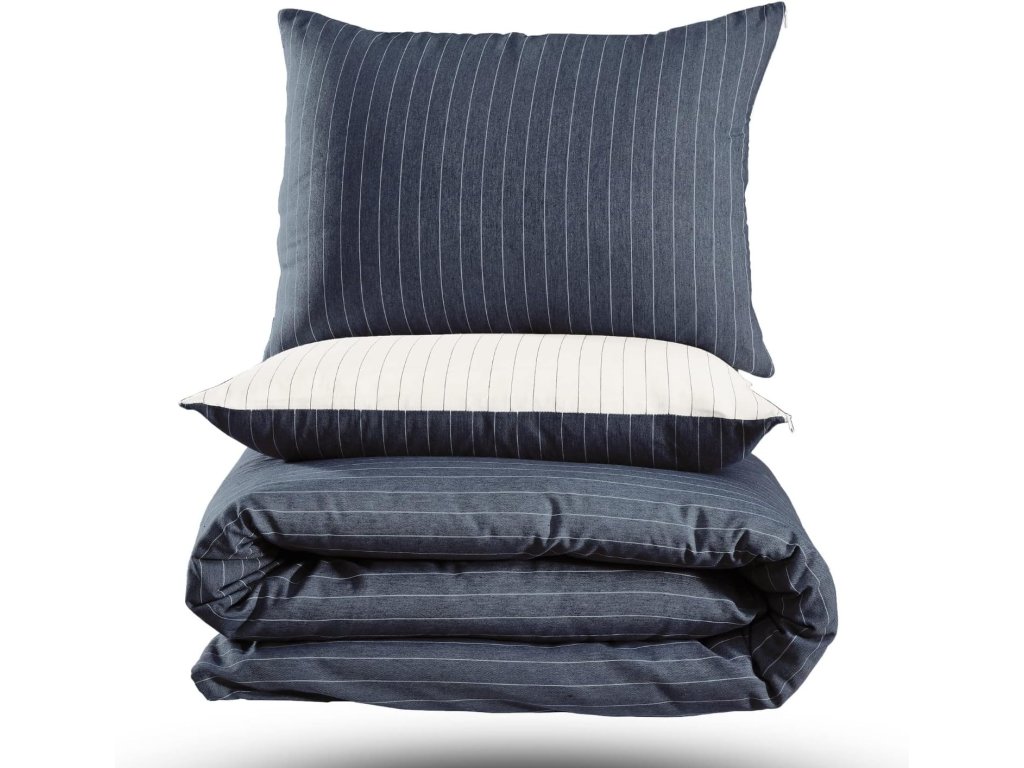 Dvoudílná sada povlečení od značky Yelken Home v modrobílé barvě je vyrobena ze směsi 65 % bavlny a 35 % polyesteru. Povlečení je měkké, prodyšné a odolné. Díky termoregulačním vlastnostem je vhodné pro použití v létě i v zimě.