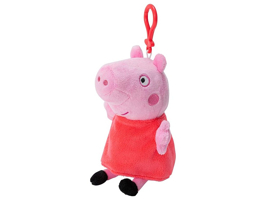 Tato zábavná plyšová klíčenka a peněženka s motivem Prasátka Peppy je vyrobena z látky a má výšku 15 cm. Je vybavena zipem na zadní straně a háčkem pro použití jako klíčenka, ideální pro děti. V červené barvě.
