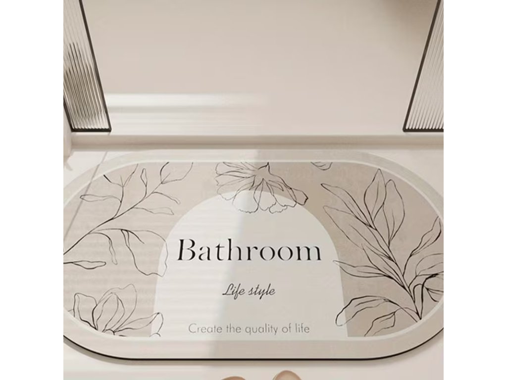 Předložka je vyrobena z inovativního materiálu na bázi diatomové země, který se vyznačuje mimořádnou schopností absorbovat vodu a velmi rychle schnout. Povrch tvoří měkká PU kůže, která je příjemná na dotek pro bosá chodidla, zatímco spodní strana je opatřena kvalitní gumovou vrstvou, která zabraňuje klouzání po mokré dlažbě a zvyšuje bezpečnost v koupelně.