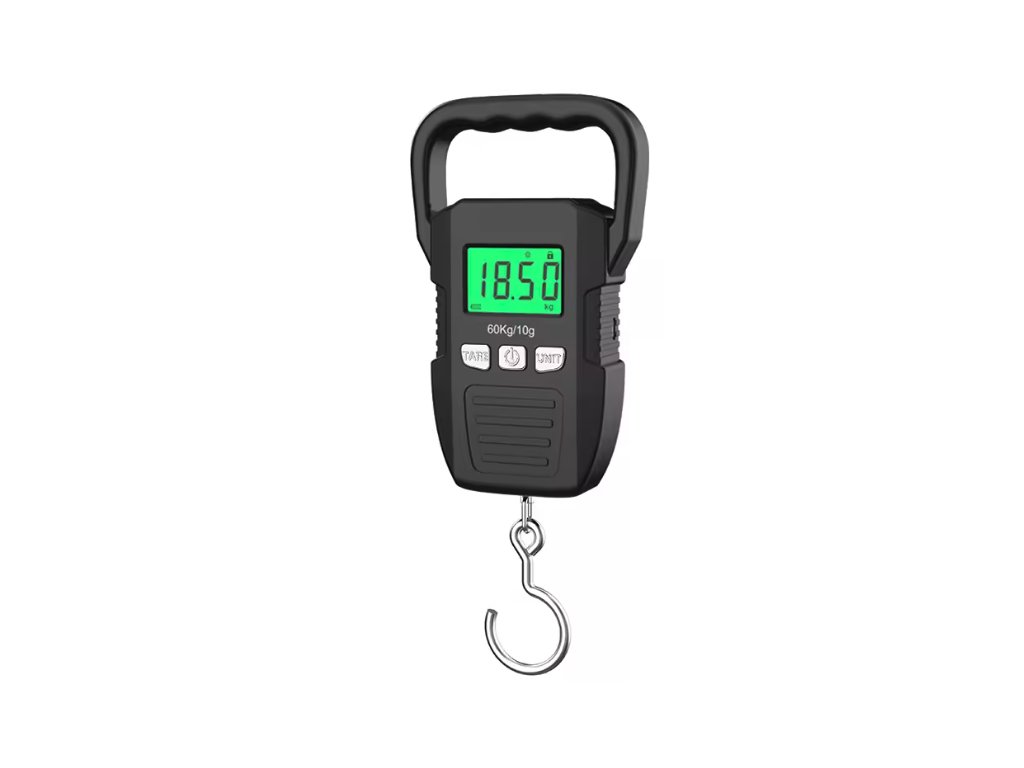 Přenosná digitální závěsná váha s LCD displejem 60kg/10g černá