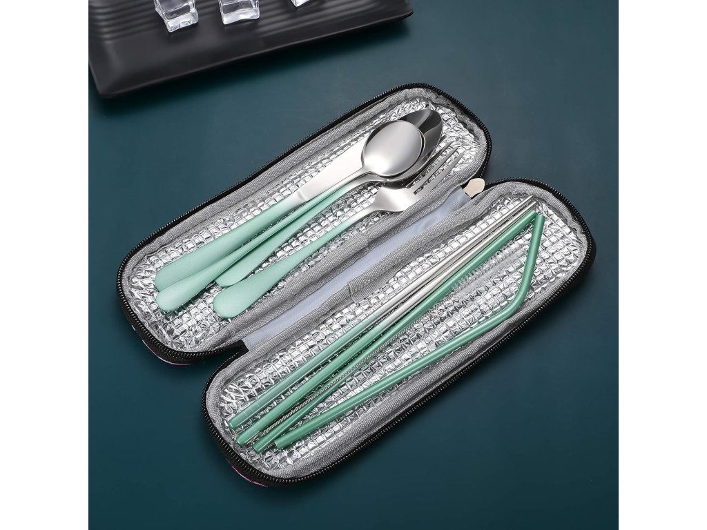 Sada má jednoduchý a nadčasový vzhled s hladkými hranami bez ostrých a drsných míst. Je stylová a hodí se do každé kuchyně, ať už máte moderní nebo klasický styl. Díky vodotěsnému pouzdru jsou příbory chráněné a hygienicky čisté, ať už je nosíte v batohu, tašce na oběd, nebo je vezmete s sebou na kempování.