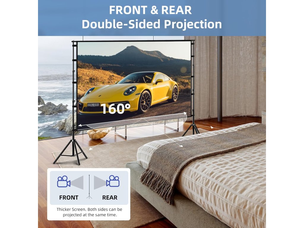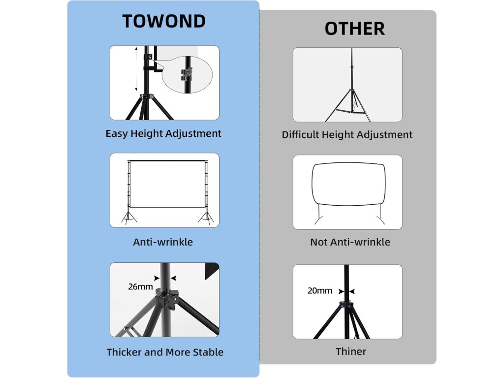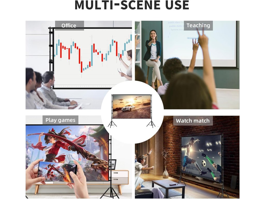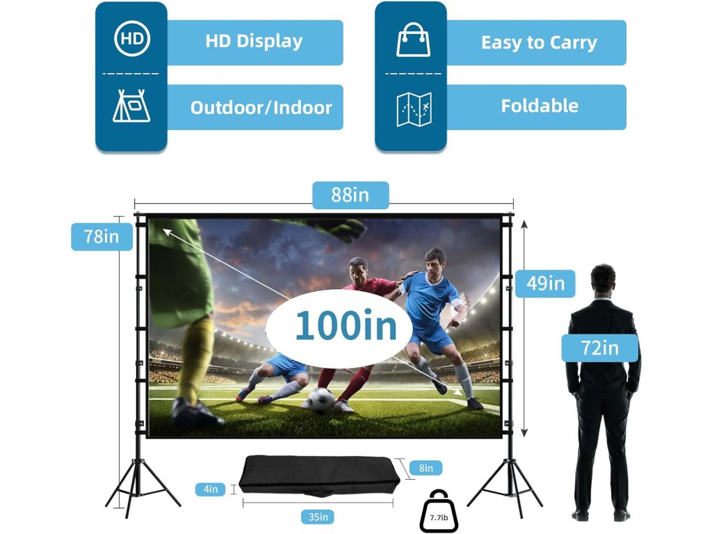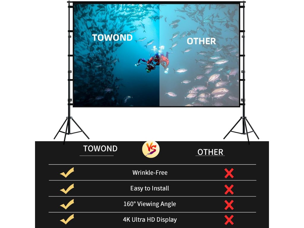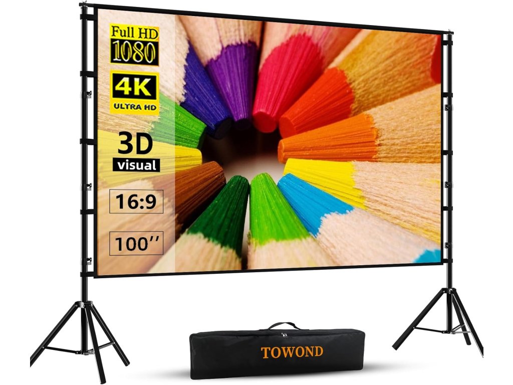 Přenosné Projekční Plátno TOWOND s Trojnožkou – 100 palců, 4K HD