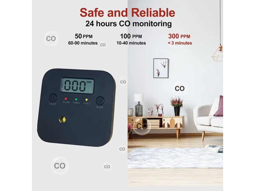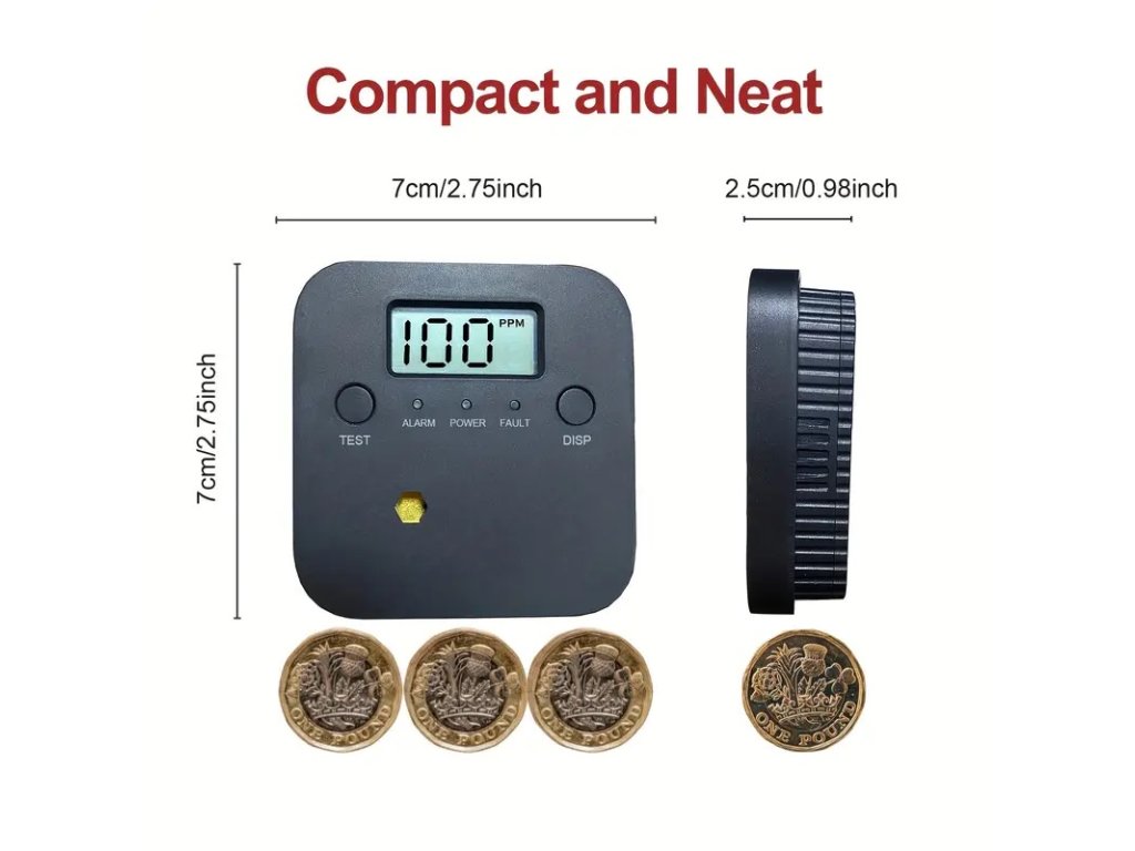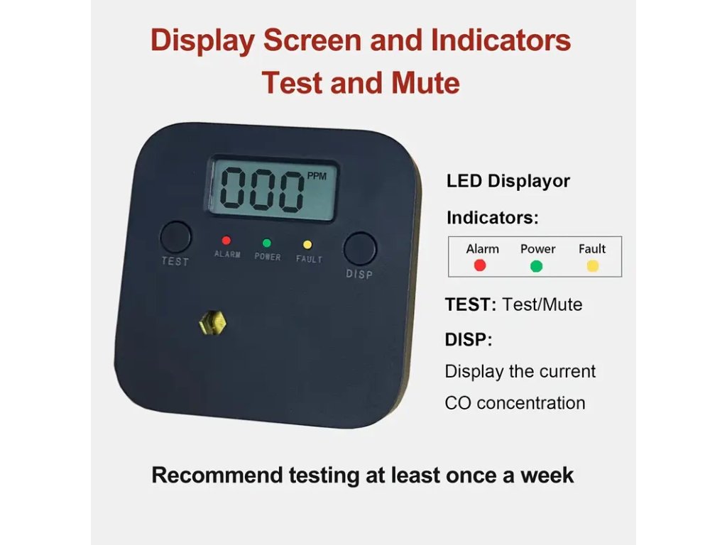 Tento přenosný detektor oxidu uhelnatého (CO) je kompaktní a bateriově napájený alarm s digitálním displejem, který měří CO koncentraci od 100 PPM. Je vybaven testovacím tlačítkem a indikátorem napájení, ideální pro domácí použití, cestování a kempování, kde zajišťuje ochranu před neviditelným nebezpečím CO.