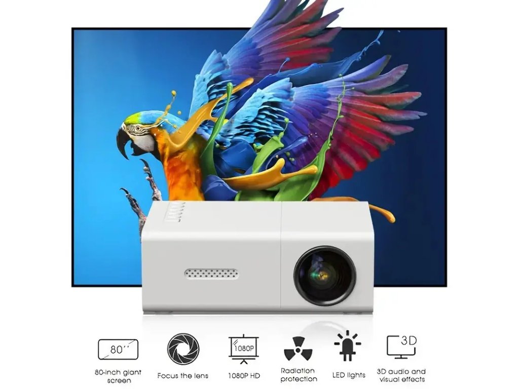 Tento kompaktní a lehký projektor je ideální pro vytvoření domácího kina. Podporuje Full HD rozlišení 1080P, má poměr stran 16:9 a jas 20 lumenů. Díky USB a SD vstupům můžete snadno přehrávat filmy, fotografie a videa.