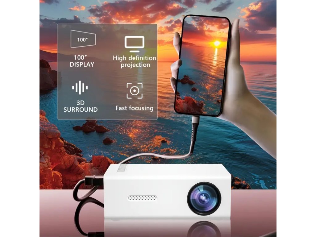 S tímto přenosným mini projektorem si můžete vychutnat filmy a videa kdekoli. Jeho kompaktní design a nízká hmotnost z něj dělají perfektního společníka na cestách, kempování nebo na festivaly. Projektor je vybaven objektivem s vysokým rozlišením, který zajišťuje ostrý a jasný obraz.