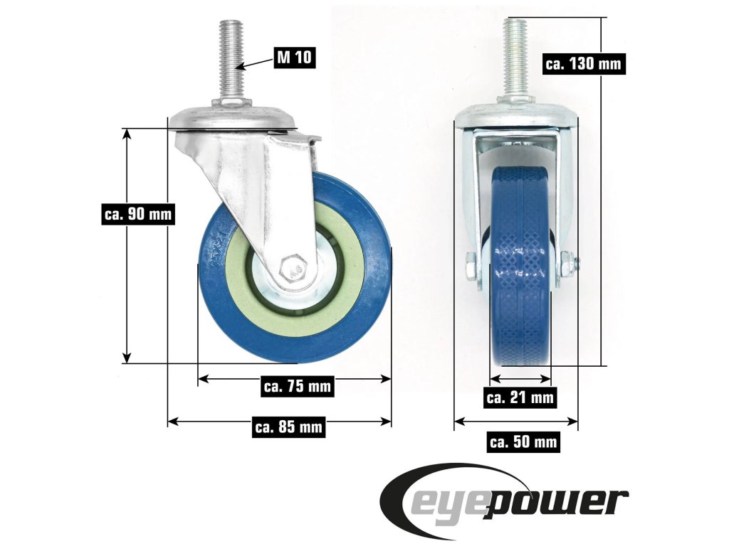 Konstrukce z pozinkované oceli a odolného nylonového kolečka zajišťuje dlouhou životnost a odolnost proti opotřebení. Díky otočnému mechanismu a závitovému kolíku M10 (cca 3 cm dlouhý) je montáž rychlá a jednoduchá. Kolečka s kuličkovými ložisky zaručují hladký, plynulý a tichý chod, minimalizují nepříjemný hluk a usnadňují manipulaci. Nylonová kolečka jsou navíc mimořádně šetrná k podlaze, což znamená, že spolehlivě ochrání vaše laminátové, parketové, kamenné nebo betonové podlahy před poškrábáním a oděrem. S celkovou výškou cca 13 cm jsou tato kolečka všestranným řešením, které šetří váš čas i záda.