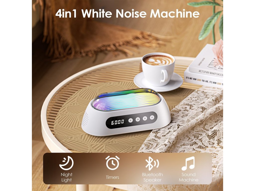 Přístroj Bílý Šum Bluetooth Duální Reproduktory Noční Světlo