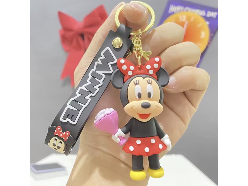 Roztomilý přívěsek na klíče Disney s postavičkou Minnie Mouse držící kytici je ideálním doplňkem pro chlapce i dívky. Tato kreslená panenka slouží jako stylový přívěsek na klíče a zároveň jako malá hračka, perfektní jako dárek k narozeninám.