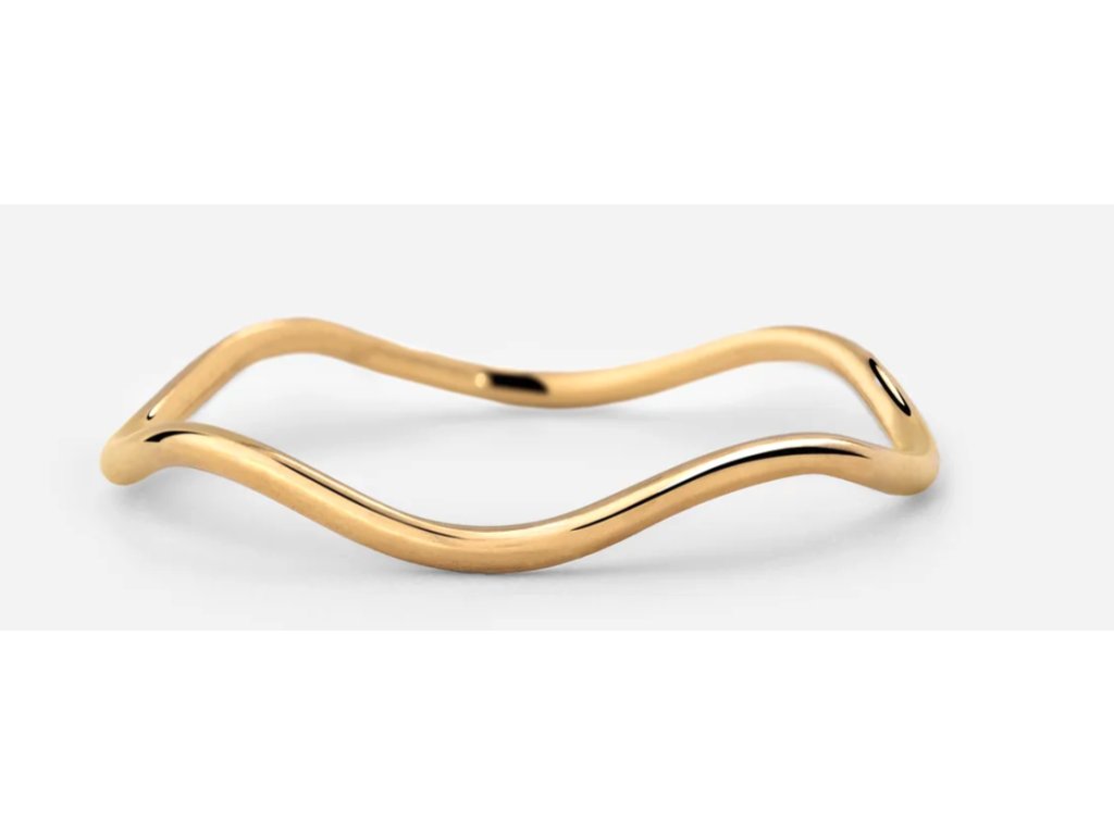 Zlatý prsten s vlnitým designem je vyroben z nerezové oceli 316L a pokoven 14karátovým zlatem. Je jemný a decentní.