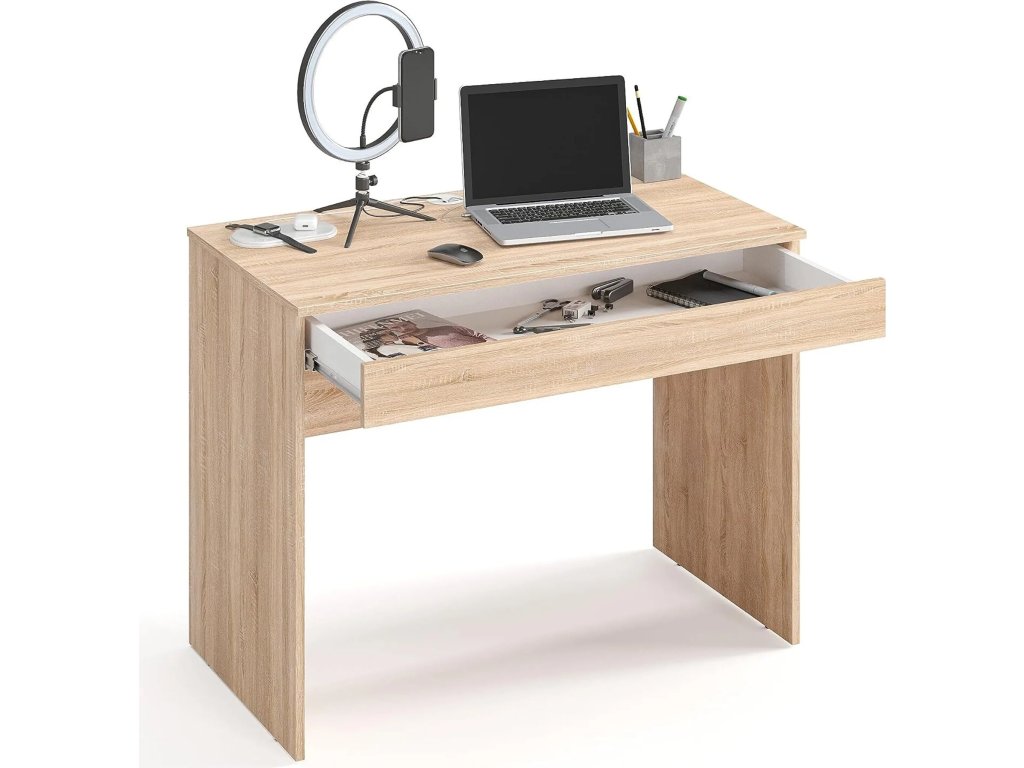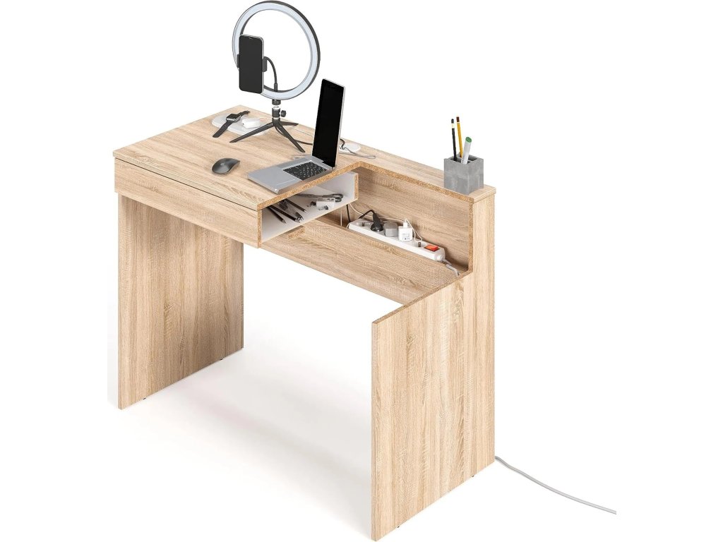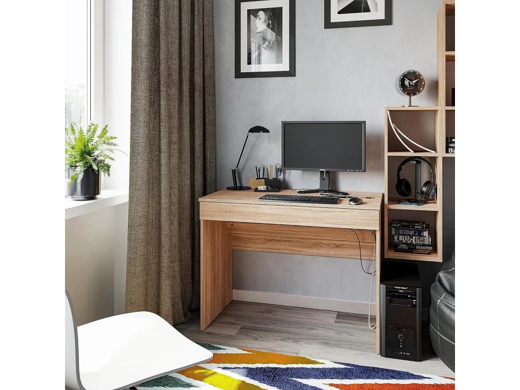Tento moderní psací stůl se hodí do dětských pokojů, domácích kanceláří nebo pokojů pro teenagery. Díky svým kompaktním rozměrům poskytuje pohodlný pracovní prostor pro dospělé i děti. Stůl je vyroben z materiálu MDF v dekoru Sonoma a jeho moderní design dodá každé místnosti stylový akcent. Stůl má integrované vedení kabelů, které je prakticky skryje a zajistí tak úhledný vzhled. Snadná a rychlá montáž je usnadněna intuitivními pokyny.