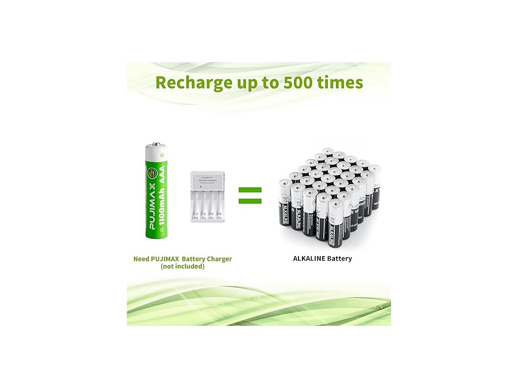Nabíjecí baterie PUJIMAX typu Ni-MH představují ekonomickou a ekologickou alternativu k jednorázovým alkalickým bateriím. Díky kapacitě 1100 mWh zajišťují dlouhou výdrž napájeného zařízení na jedno nabití. Tyto baterie jsou navrženy s technologií nízkého samovybíjení, což znamená, že si udrží svou kapacitu i při delším období nečinnosti.