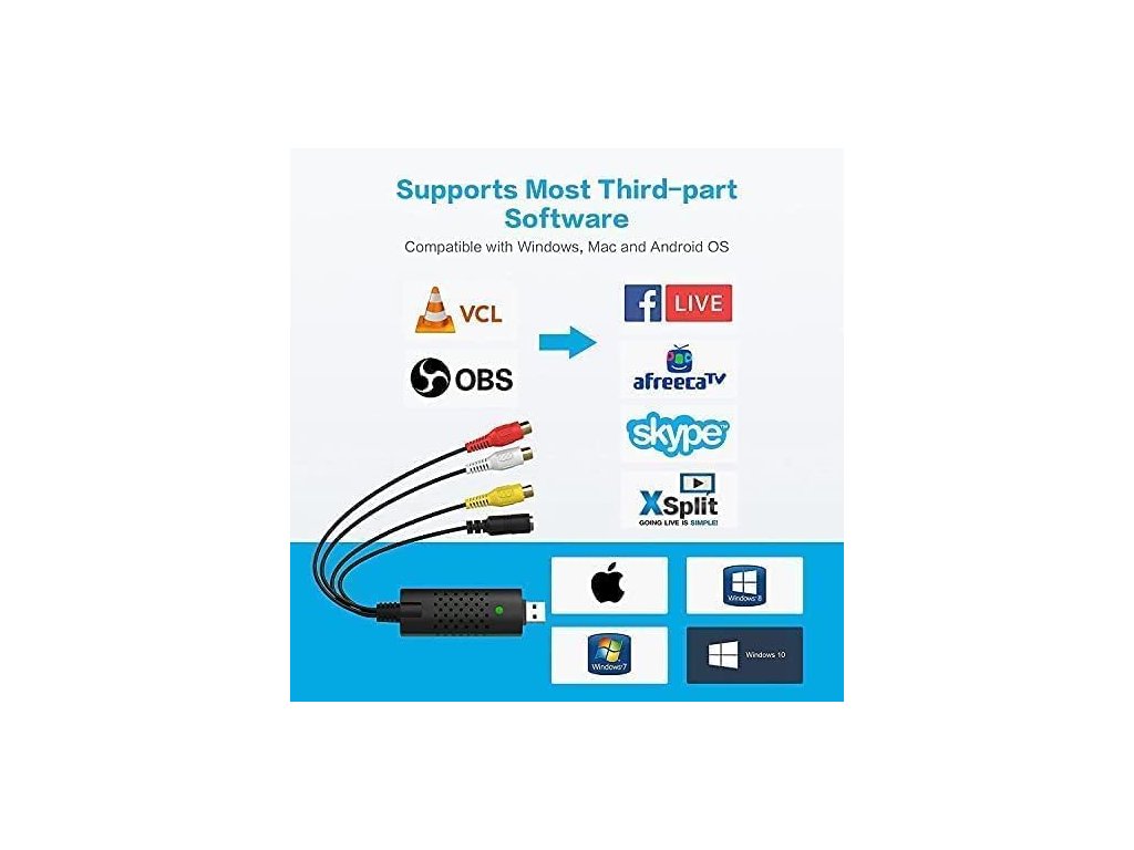 USB záznamová karta q-sonic umožňuje snadno převést analogové video a audio z VHS, VCR, Hi8 a DV kazet do digitální podoby na vašem počítači. Ušetřete místo a uchovejte si vzácné vzpomínky. Převádí kompozitní RCA nebo S-Video vstup na HD 720P USB výstup a zaznamenává zvuk bez nutnosti zvukové karty. Pokročilá technologie zpracování signálu zajišťuje skvělou kvalitu obrazu s přesnými barvami a detaily. Funguje na principu Plug and Play, ovladač se nainstaluje automaticky po připojení k PC. Není potřeba externí napájení. Široká kompatibilita s video zařízeními s RCA nebo S-Video konektory a operačními systémy Windows a Mac OS. Podporuje video formáty NTSC a PAL s možností nastavení jasu, kontrastu, odstínu a sytosti. Pro nahrávání doporučujeme software OBS Studio nebo PotPlayer pro Windows a QuickTime Player pro Mac (zdarma ke stažení).