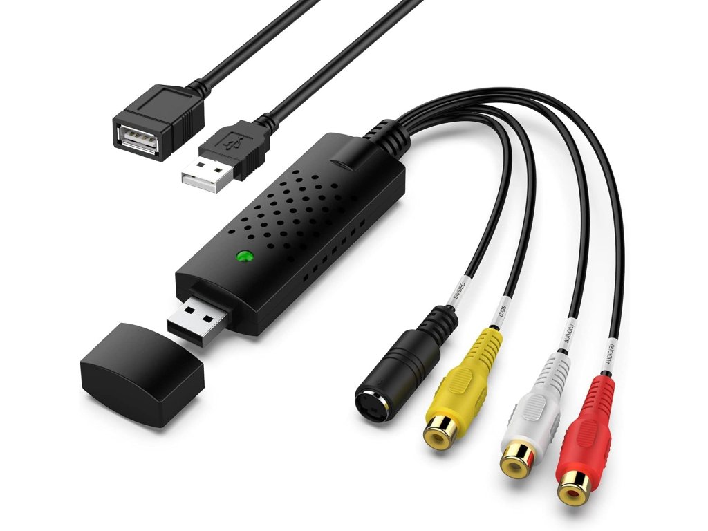q-sonic USB záznamová karta pro převod VHS, mini DV, Hi8, DVD na digitální formát, RCA/S-Video na USB, 720P, Plug and Play, kompatibilní s Windows/Mac.