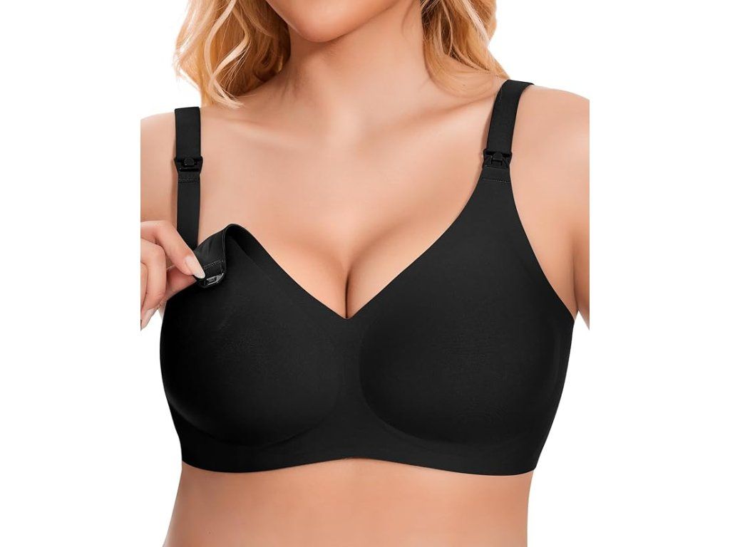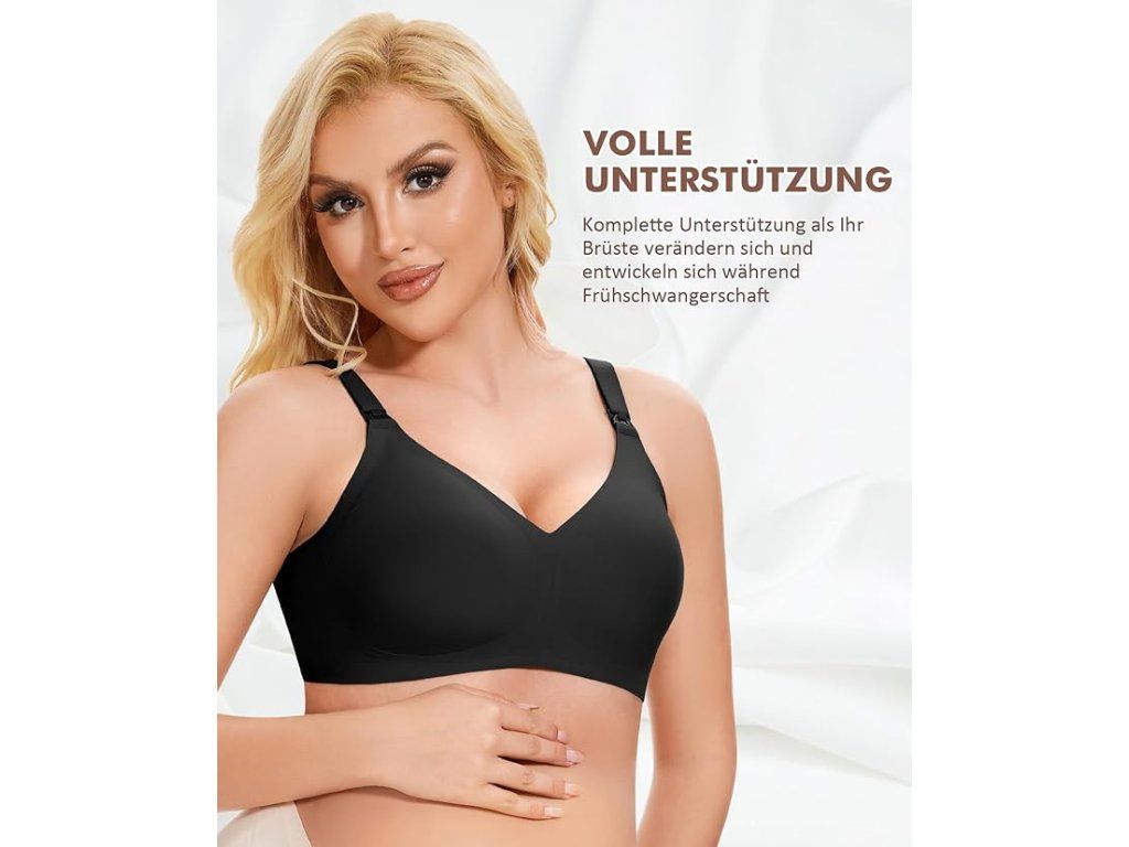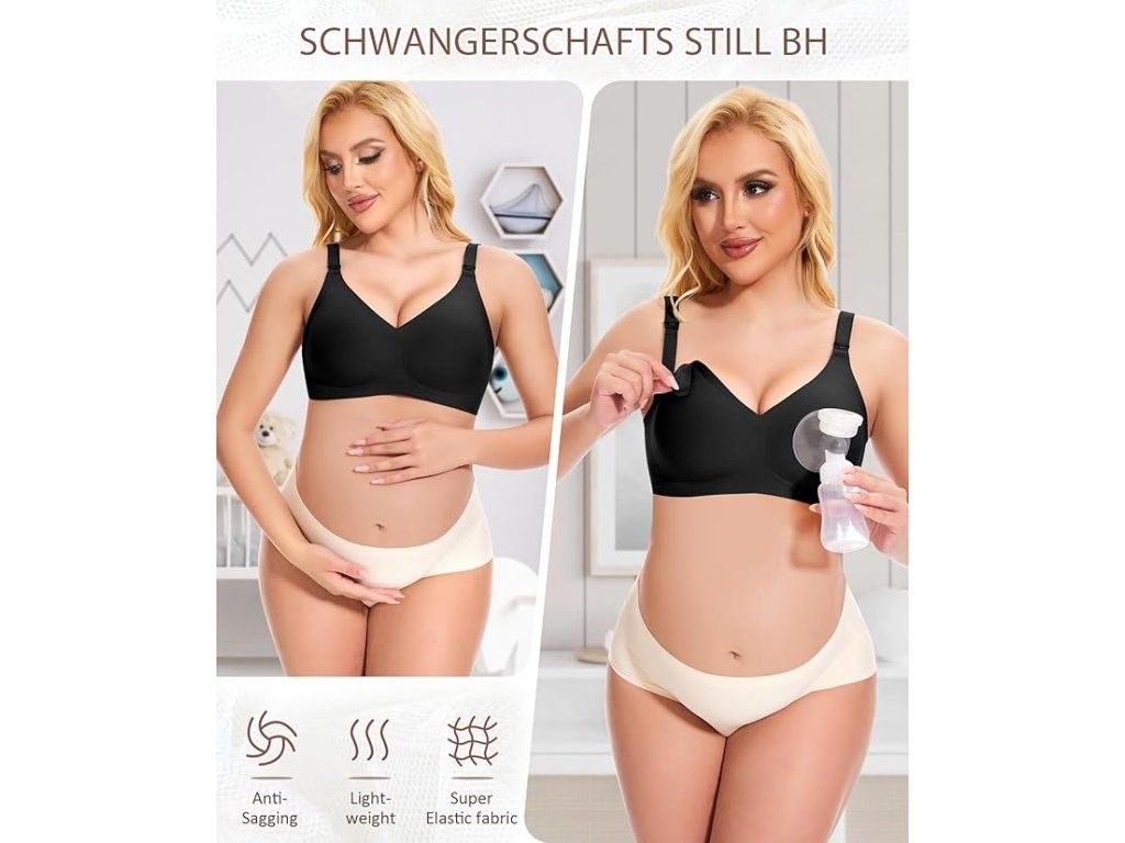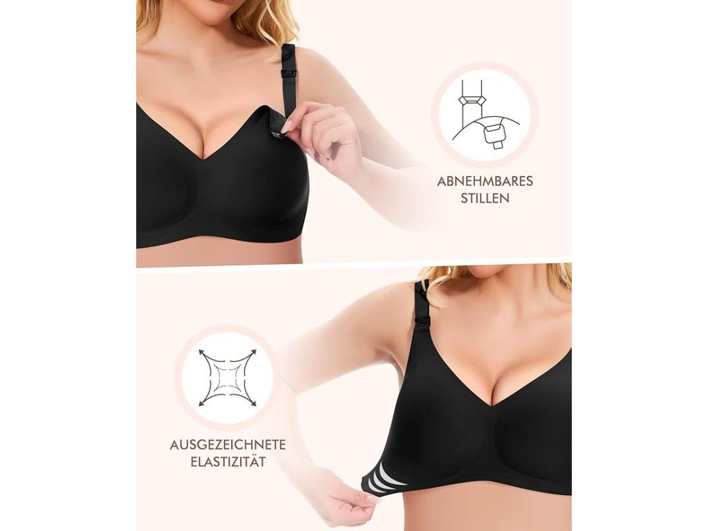 Bezešvá a pružná podprsenka pro těhotné a kojící ženy. Nabízí komfort, podporu a snadné kojení kdykoliv během dne.
