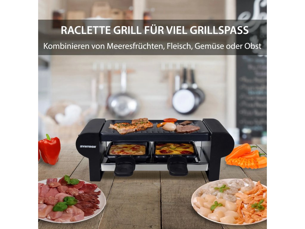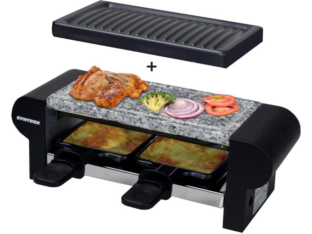 Díky výkonu 350 W se přístroj rychle nahřeje, přičemž jeho rozměry jsou navrženy tak, aby na stole nezabíral zbytečně mnoho místa. Součástí balení jsou dvě raclette pánvičky, které mají nepřilnavý povrch, což výrazně usnadňuje jejich následné čištění. Smaltované provedení a nerezové prvky dodávají grilu moderní vzhled a zajišťují jeho dlouhou životnost.