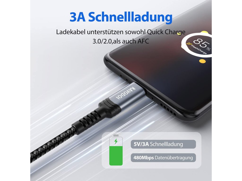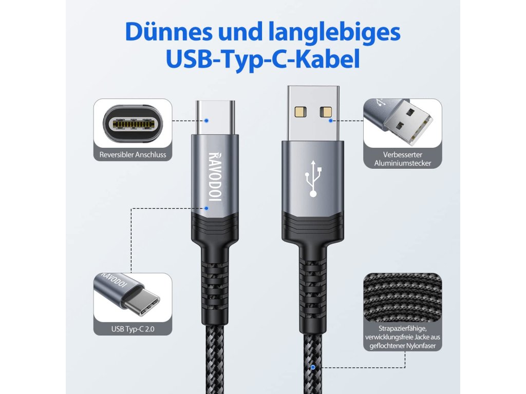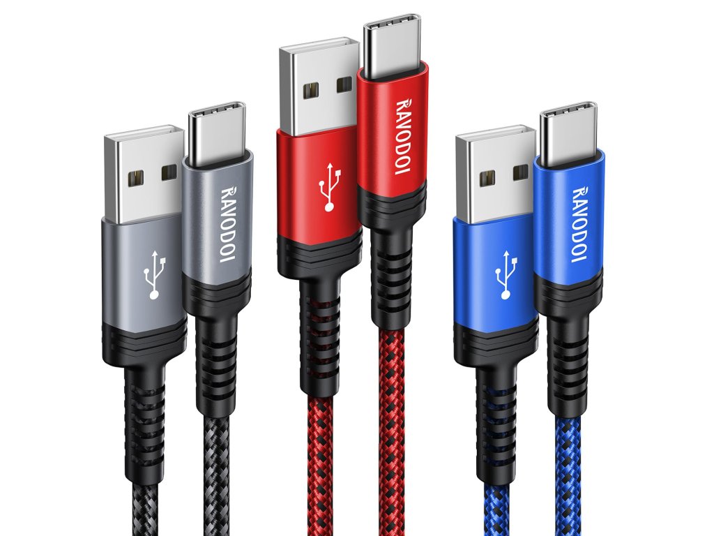 Ravodoi Nabíjecí kabel USB C 1 m balení 3 kusy šedá červená modrá