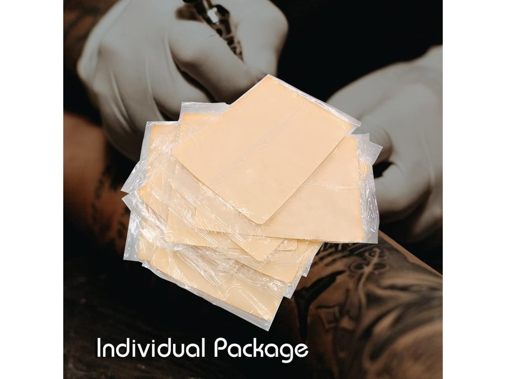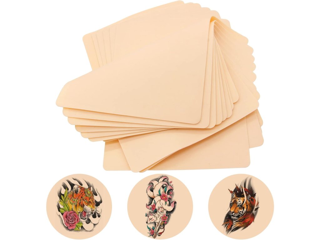 Rayyl Fake Skin Practice je sada 12 listů syntetické kůže o rozměrech 7.5"x5.6" (přibližně 19 x 14,2 cm) pro nácvik tetování a microbladingu. Materiál má podobný pocit jako lidská kůže a je dostatečně tlustý pro oboustranné použití.