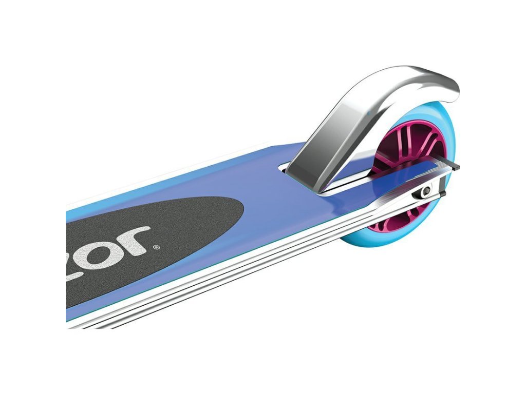 DLOUHÝ POPIS Razor A Holographic není jen dopravní prostředek, ale módní doplněk, který nastolí nový trend ve vašem okolí. Konstrukce z vysoce kvalitního hliníku zajišťuje, že je koloběžka mimořádně lehká pro přenášení, ale zároveň dostatečně robustní pro každodenní jízdu. Unikátní holografický povrch mění barvy podle úhlu dopadu světla, což z této koloběžky činí nepřehlédnutelný kousek na každé ulici.