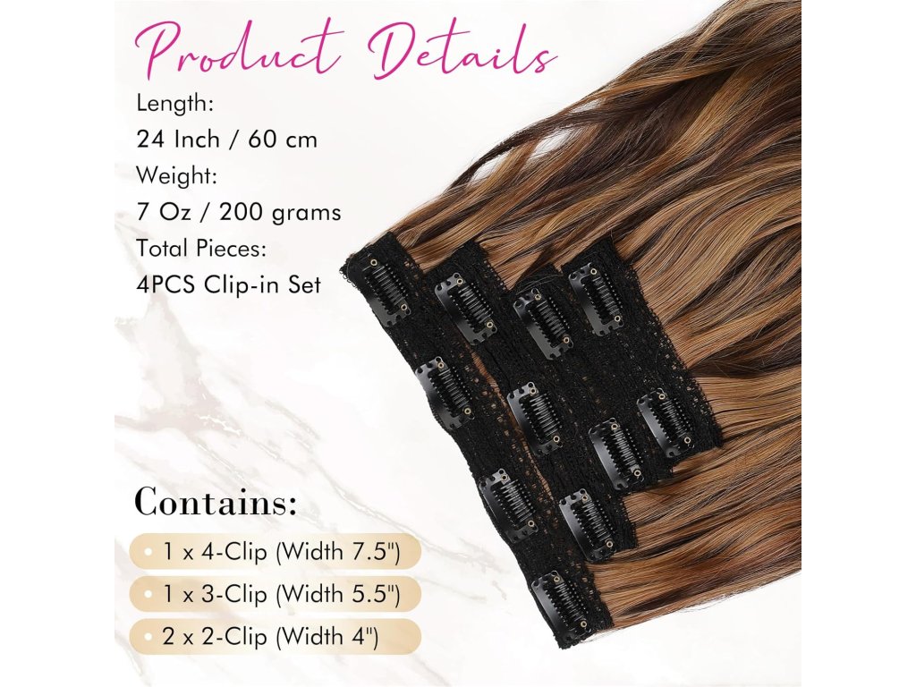 REECHO Clip-In příčesky, 60 cm, tmavě hnědé se zlatým melírem