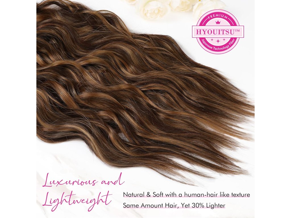 Tyto clip-in příčesky od značky REECHO vám okamžitě dodají luxusní délku a objem. Jsou 60 cm dlouhé, mají přirozený vzhled vlnitých vlasů a snadno se připevňují. Jsou ideální pro ty, kteří chtějí dosáhnout plného a bohatého účesu bez poškození svých vlasů.