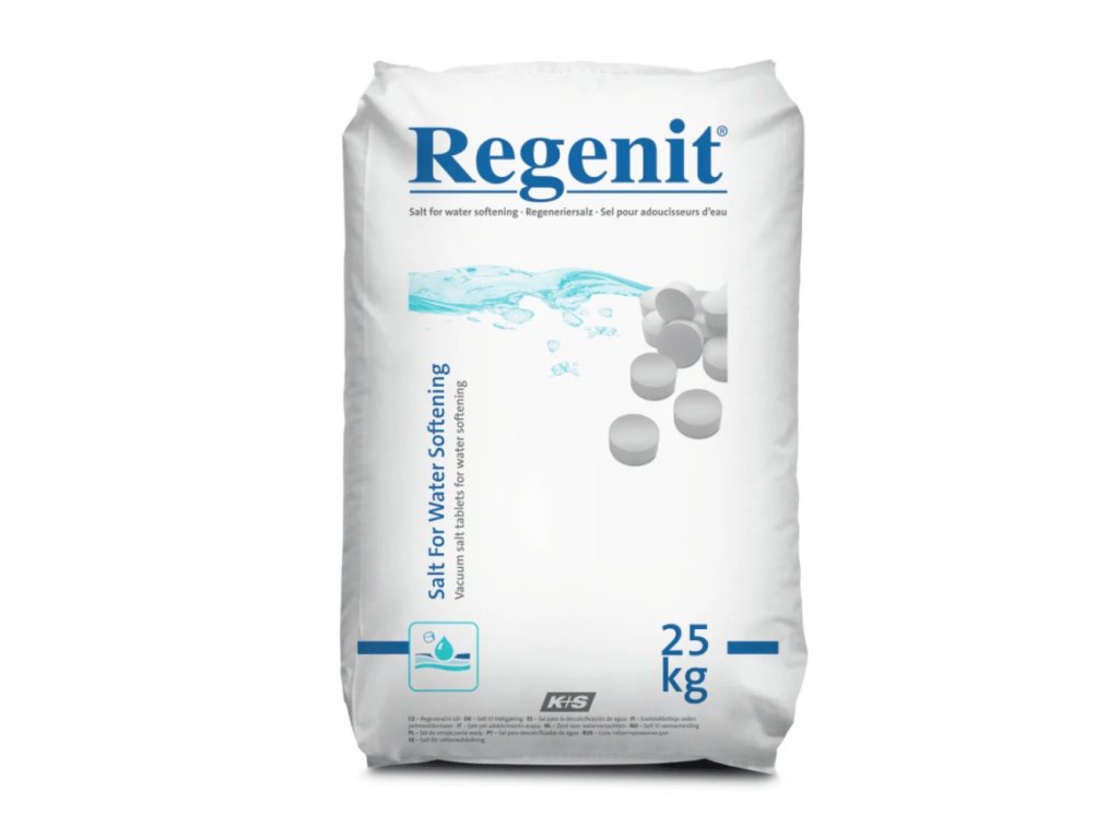 Klíčové vlastnosti Typ produktu: Tablety soli pro změkčovače vody Značka: Regenit Hmotnost: 25 kg Vlastnosti: Vysoká čistota, snadná rozpustnost, bez aditiv, splňuje normu EN 973 typu A