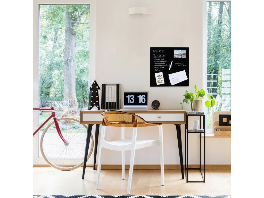 Klíčové vlastnosti: Funkčnost Tabule slouží k připevňování poznámek pomocí magnetů i k psaní bílým popisovačem. Všestrannost Lze ji použít jako nástenku na poznámky doma i v kanceláři. Příslušenství Součástí balení je 3 magnety a bílý popisovač. Chytré otírání Magnetický držák na pero má speciální plstěnou spodní stranu která umožňuje rychlé a pohodlné otření tabule.