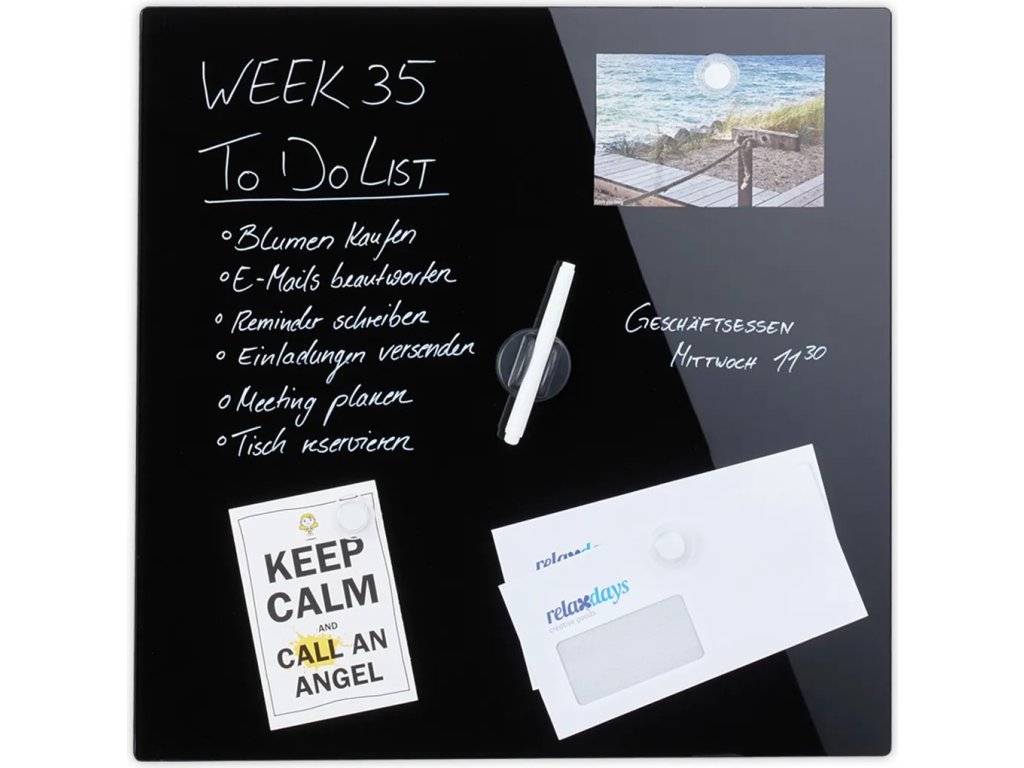 Relaxdays Černá magnetická tabule ze skla 50cm