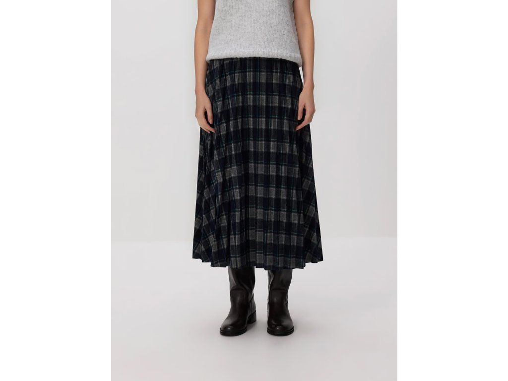 Tmavomodrá sukně s kostkovaným vzorem a plisováním nabízí nadčasový vzhled a pohodlí díky pružnému pasu.