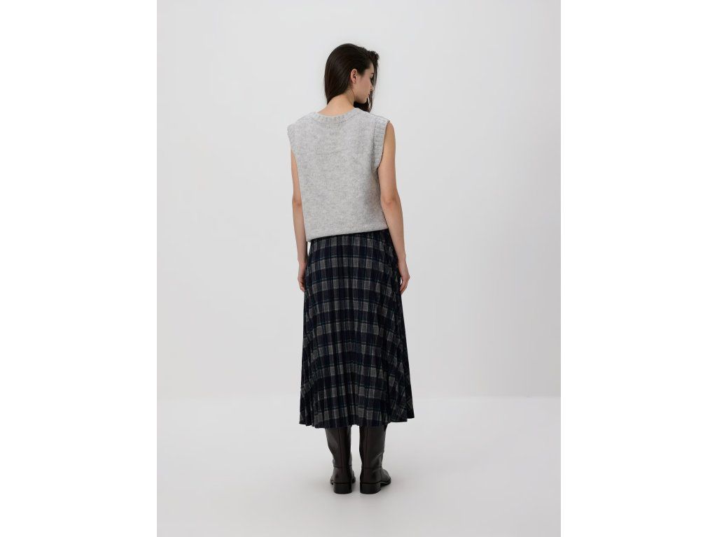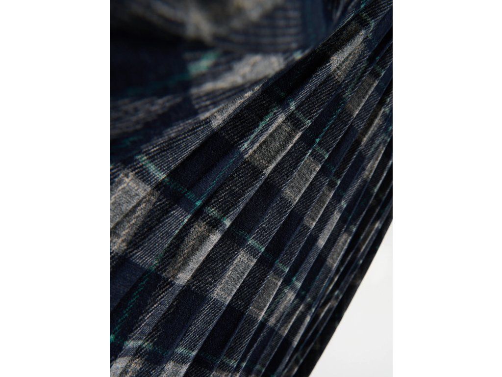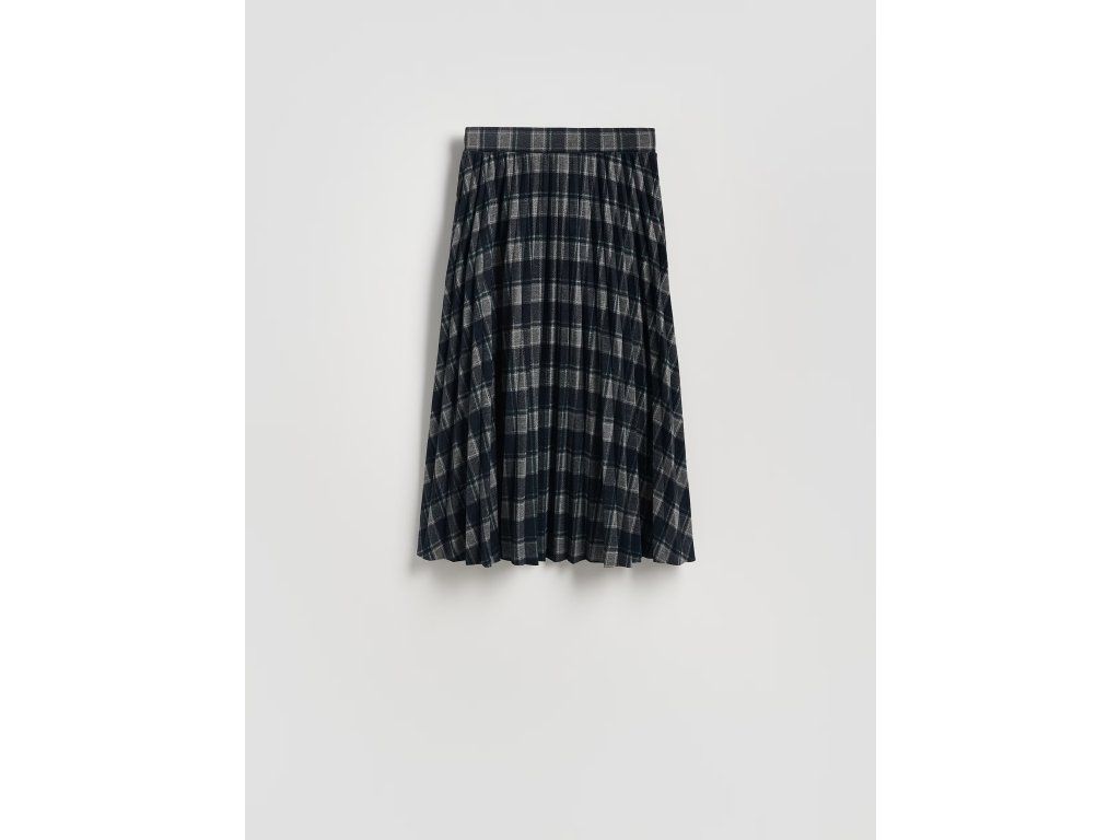 Tmavomodrá sukně s kostkovaným vzorem a plisováním nabízí nadčasový vzhled a pohodlí díky pružnému pasu.