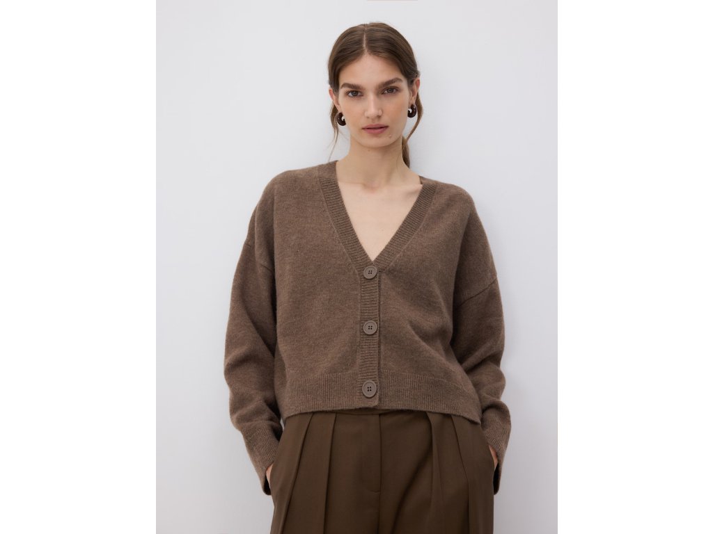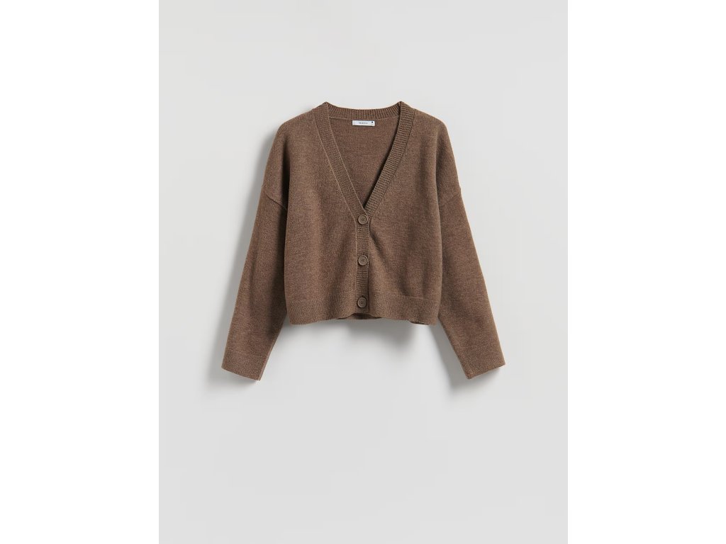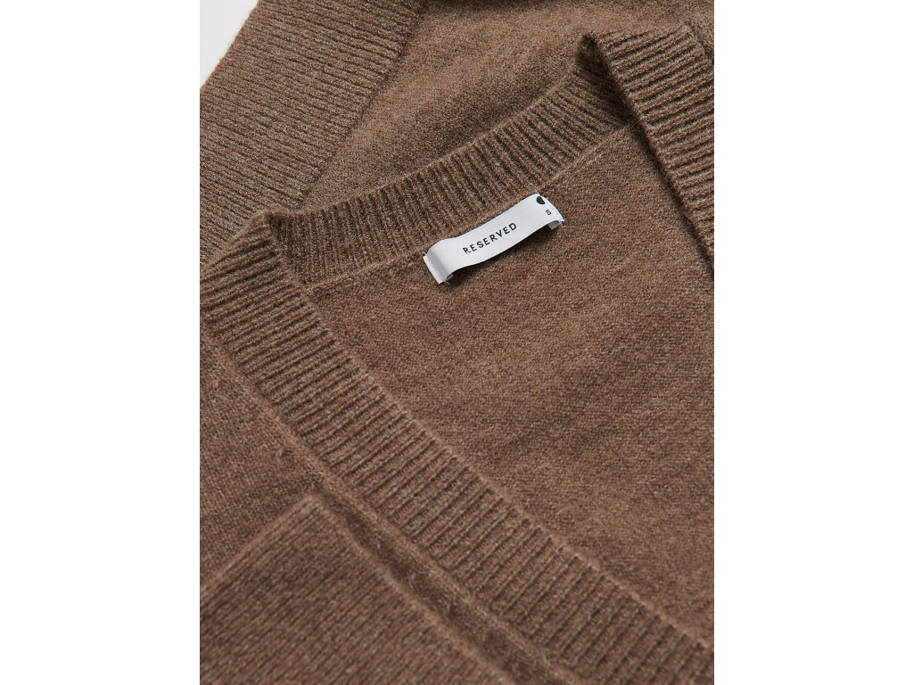 Moderní pletená vesta RESERVED v elegantní hnědé barvě připomínající odstín kávy je stylovým doplňkem pro každodenní outfit. Díky pohodlnému střihu se snadno kombinuje s tričkem, košilí nebo rolákem.