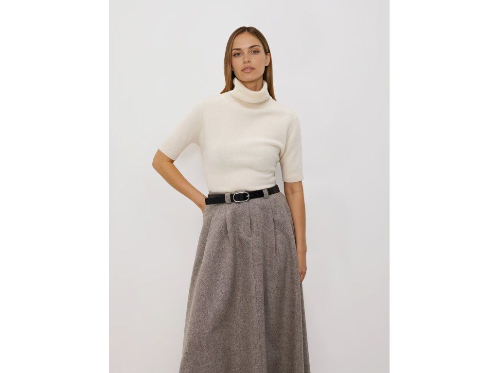 Vícebarevná sukně z kvalitní směsi s vlnou nabízí komfort, hřejivost a nadčasový styl pro každodenní i elegantní nošení.