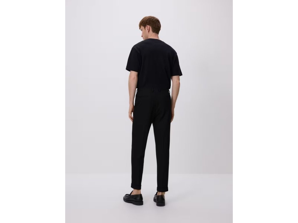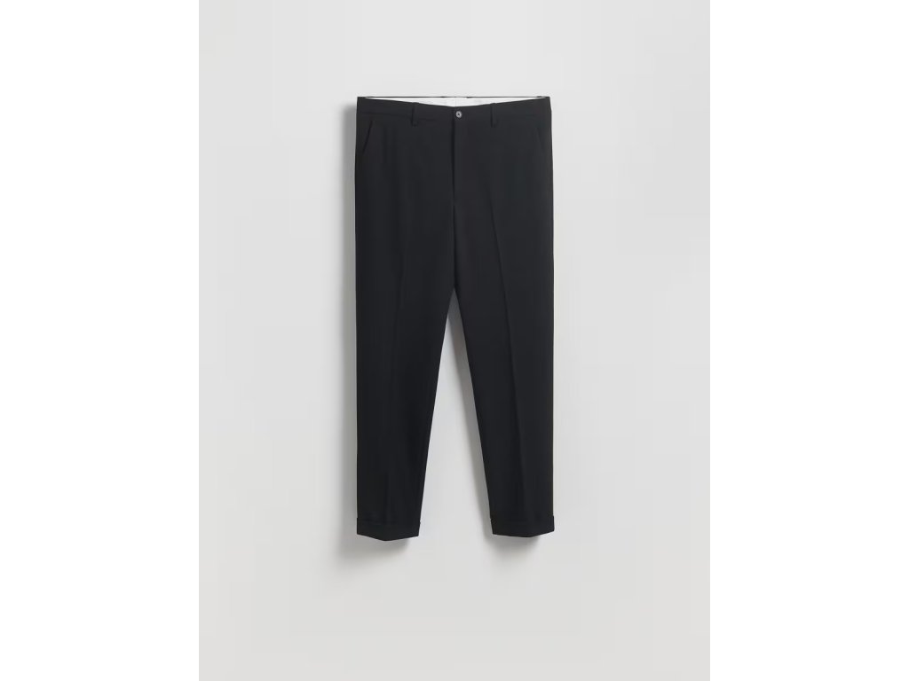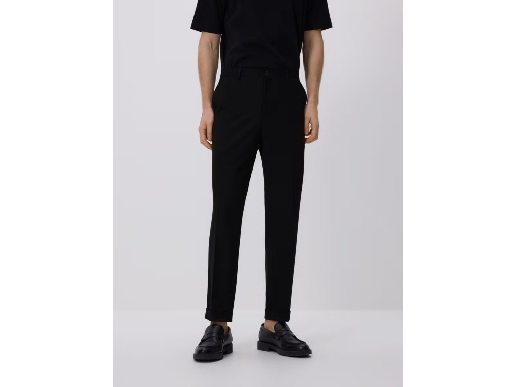 Stylové pánské společenské kalhoty Reserved v klasické černé barvě jsou ideální volbou pro formální příležitosti, práci i elegantní každodenní outfit.