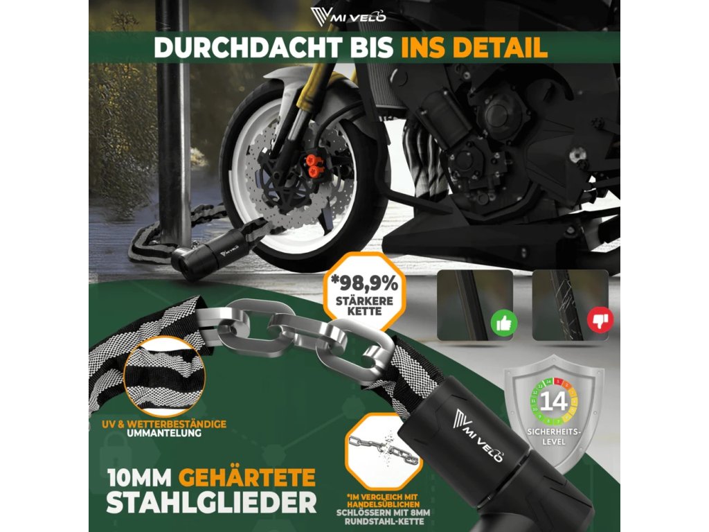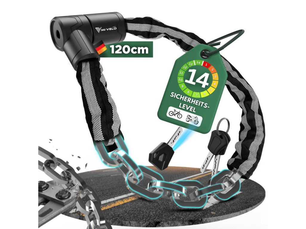 Řetězový zámek KRONOS nabízí spolehlivou ochranu vašeho kola nebo motocyklu díky pevnému kovovému řetězu a kvalitnímu zámku. Délka 120 cm umožňuje snadné připoutání k pevnému objektu, což zvyšuje bezpečnost a klid při parkování.