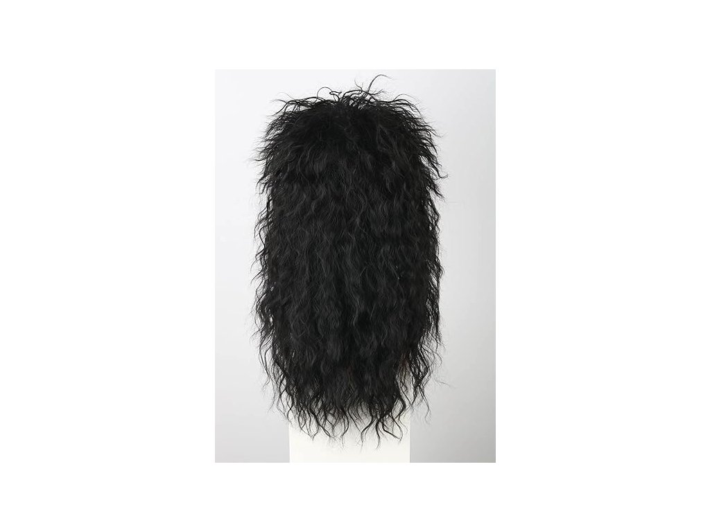 Retro paruka věrně napodobuje ikonický účes s krátkými vlasy na temeni a dlouhými prameny vzadu, který definoval éru disco a rocku. Je vyrobena z vysoce kvalitních syntetických vláken v přirozeném černém odstínu, která vynikají svou tepelnou odolností a realistickým vzhledem. Vysoká hustota vlasů (180 %) zajišťuje bohatý objem a autentickou strukturu vln, které drží svůj tvar i při divokém pohybu na parketu.