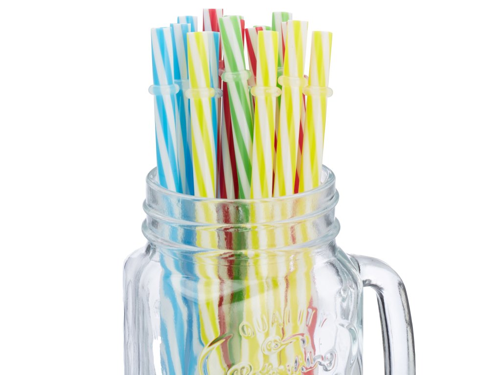 Retro sklenice s uchem žlutá, 4 barevná brčka 500ml