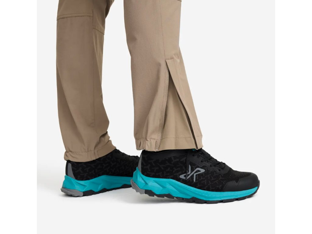 Kalhoty disponují nastavitelným pasem s integrovaným páskem pro individuální přizpůsobení. Spodní manžety nohavic jsou elastické a vybavené zipy, které umožňují rozšíření prostoru dle potřeby. Praktické úložné řešení zahrnuje několik kapes, včetně snadno přístupné kapsy na stehně pro uložení telefonu nebo mapy. Díky čistému a všestrannému designu jsou kalhoty vhodné nejen na horské stezky, ale i pro běžné nošení ve městě. Nízká hmotnost a skvělá sbalitelnost z nich dělají ideální prvek výbavy pro cestování nalehko.