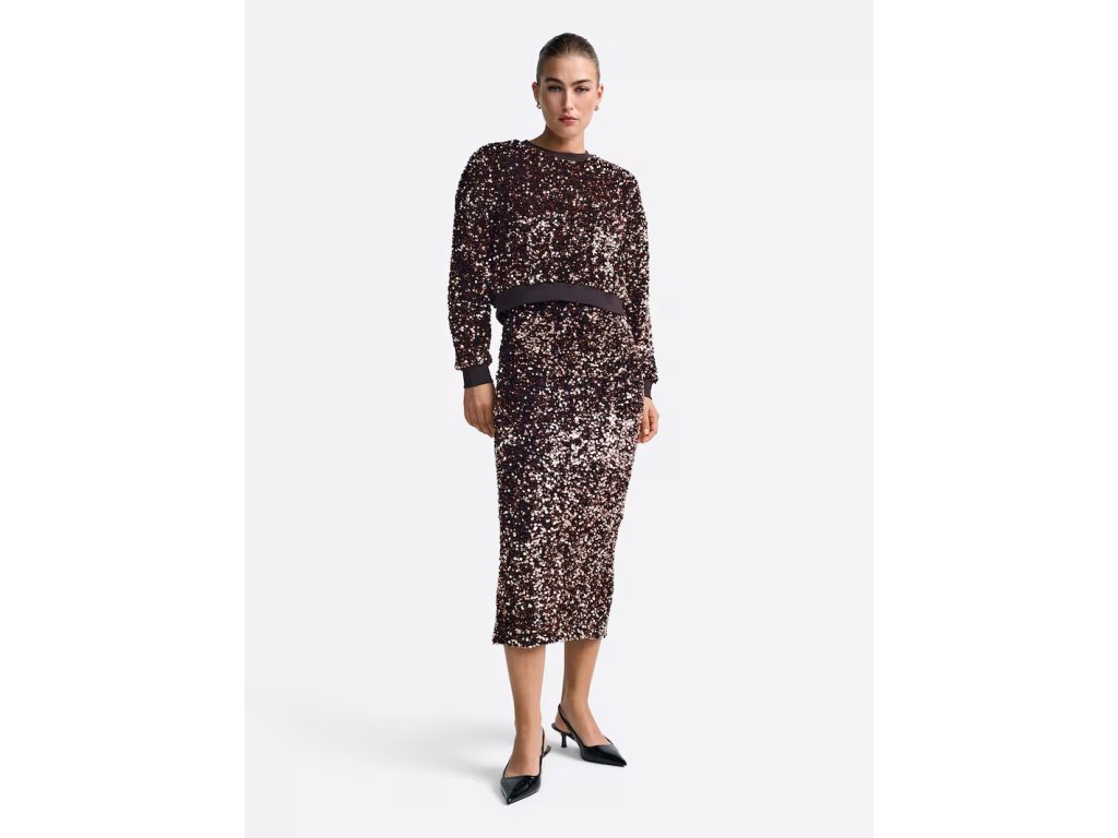 Celoplošné zdobení flitry dodává mikině jemný lesk a glitterový efekt, což z ní činí ideální kousek pro neformální společenské události i stylový každodenní outfit. Mikina disponuje klasickým kulatým výstřihem a střihem Normal fit, který lichotí postavě. Výrazným prvkem jsou extra dlouhé rukávy, které podtrhují moderní siluetu. Kvalitní zpracování z Portugalska zaručuje dlouhou životnost a stálost materiálu.