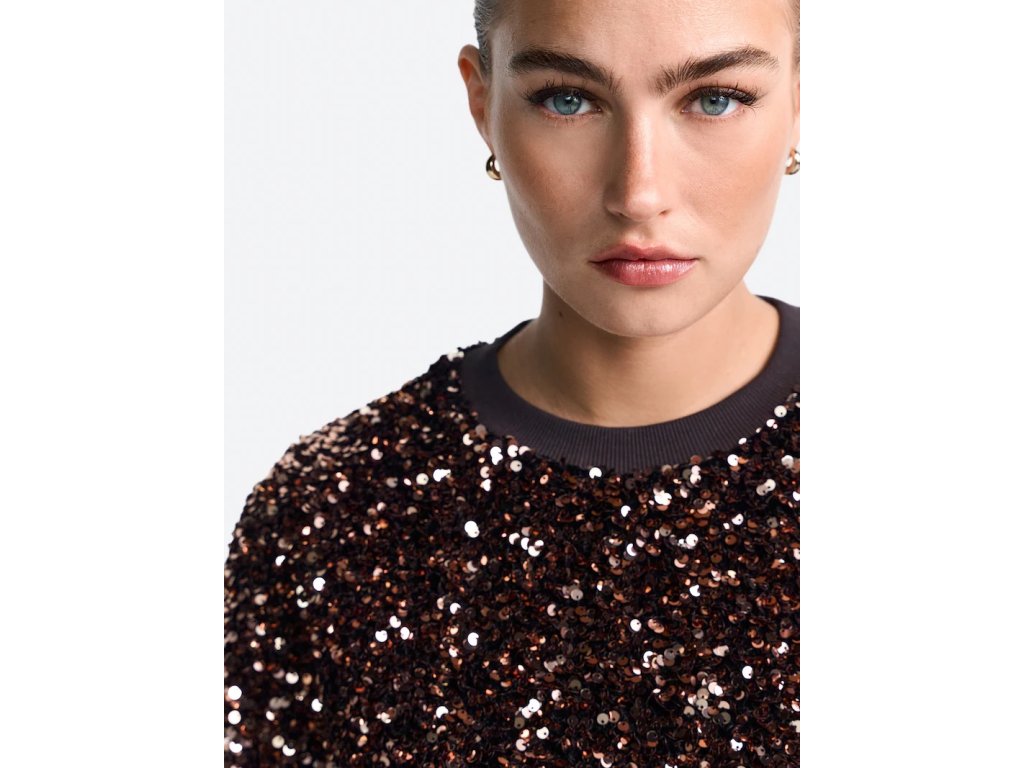 Rich & Royal Dámská mikina s flitry čokoládová velikost XL