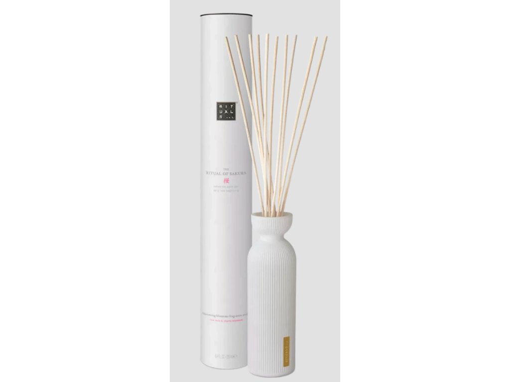 Vonné tyčinky z kolekce The Ritual of Sakura jsou navrženy tak, aby provoněly místnost bez nutnosti jejich otáčení. Elegantní skleněný design doplní jakýkoliv interiér a vytvoří v něm uklidňující atmosféru inspirovanou japonskou tradicí oslavující krásu rozkvétajících sakur. Složení kombinuje sladkou vůni třešňového květu s jemným rýžovým mlékem, což vytváří příjemně čistý a relaxační zážitek.