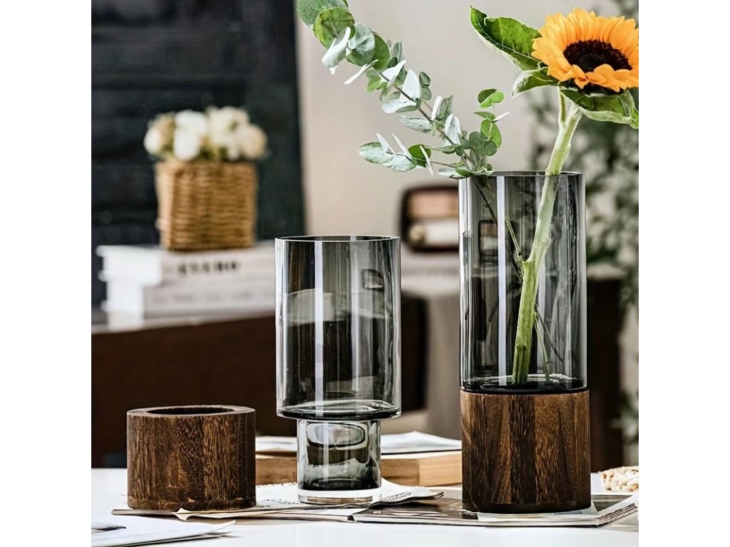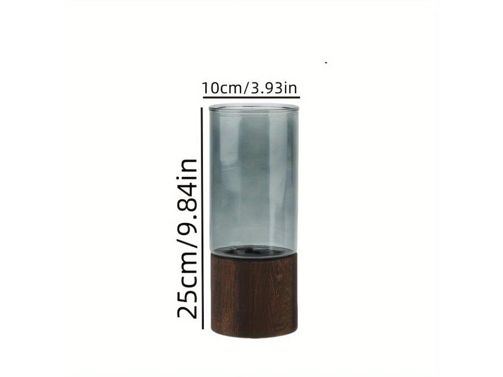 Jedinečný rustikální design: Každá váza je ručně vyrobena, což jí dodává jedinečný charakter a šarm. Válcový design v kombinaci s dřevem a sklem vytváří krásný kontrast, který podtrhuje přírodní a rustikální vzhled.