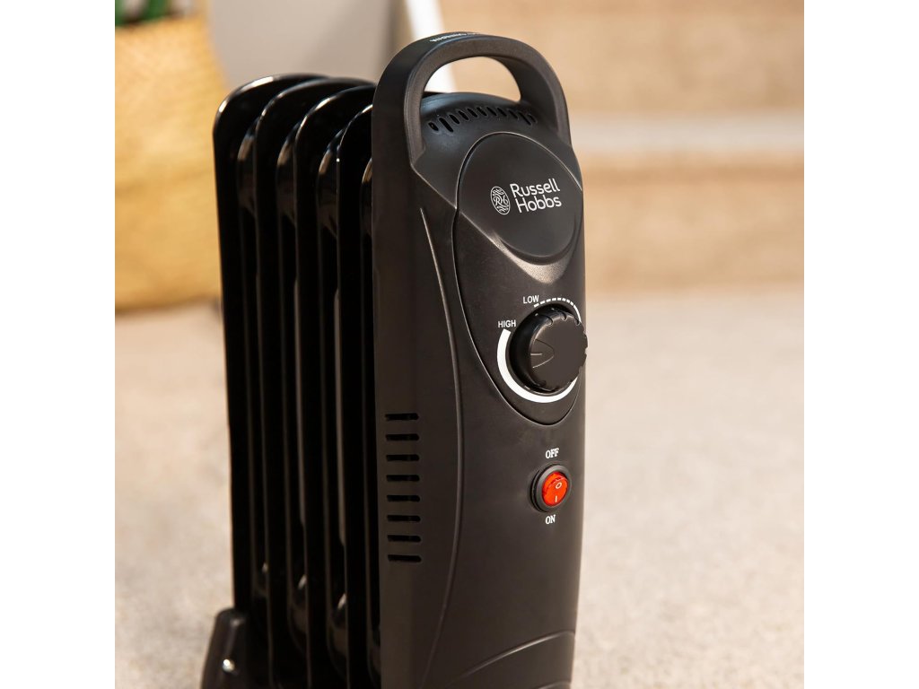 Olejový radiátor značky Russell Hobbs v elegantním černém provedení nabízí efektivní a rovnoměrnou distribuci tepla díky konstrukci s pěti topnými žebry.