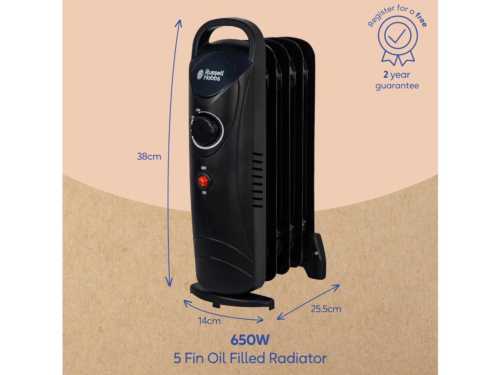 Russell Hobbs Olejový radiátor 650 W černý 5 žeber pro místnosti do 10 m2