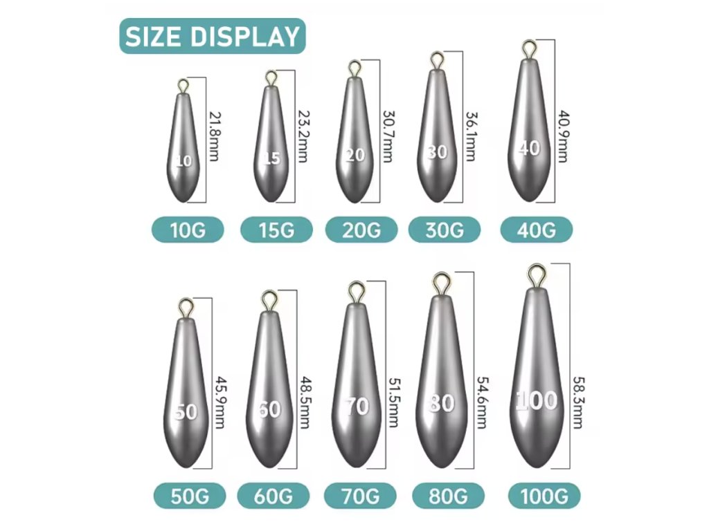 Tato sada 10 rybářských zátěží o hmotnosti 30 g je navržena pro daleké náhozy. Díky svému tvaru je ideální pro mořský rybolov, ale hodí se i na jiné druhy rybaření, kde potřebujete dostat návnadu na velké vzdálenosti. Je to ideální doplněk pro každého rybáře.