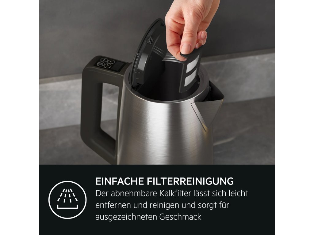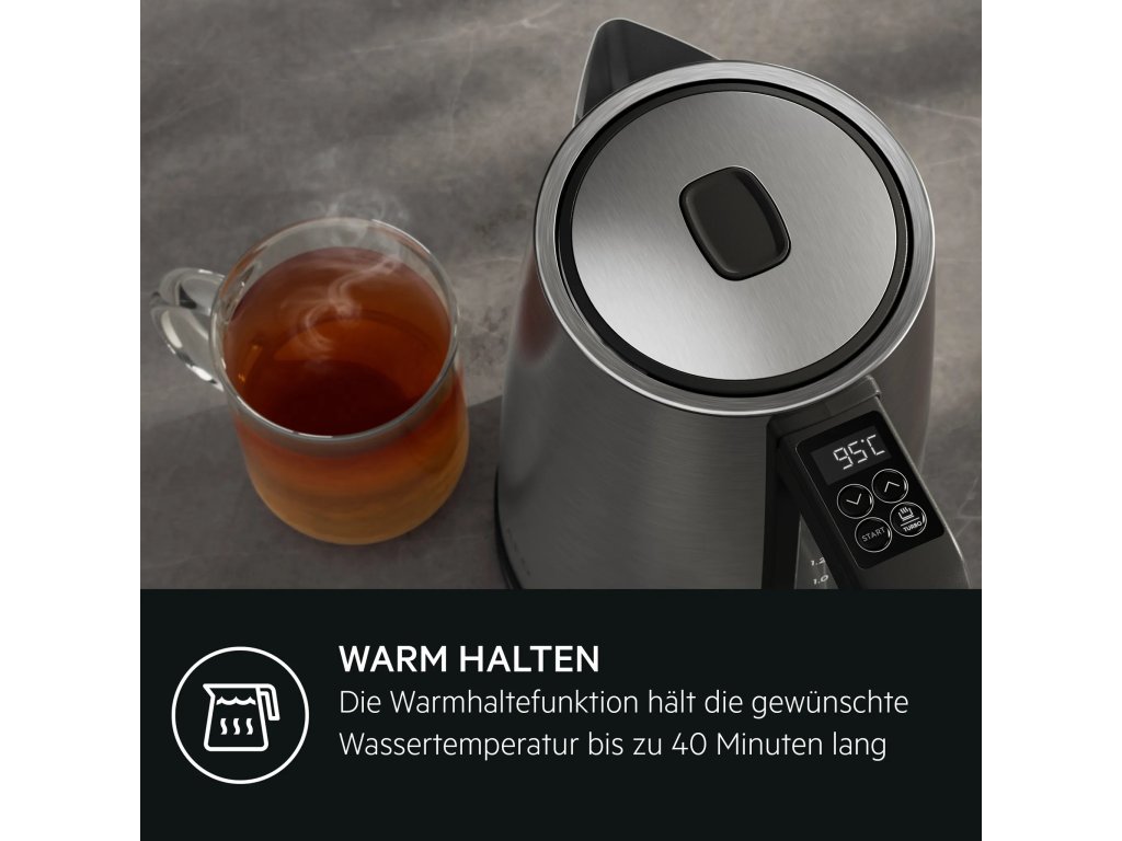 Rychlovarná konvice AEG K5-1-6ST Deli 5 je navržena pro všechny, kteří upřednostňují přesnou přípravu teplých nápojů. Díky systému SelectPROSystem umožňuje volbu konkrétní teploty vody, což je ideální pro jemné čaje, kávu i další horké nápoje.
