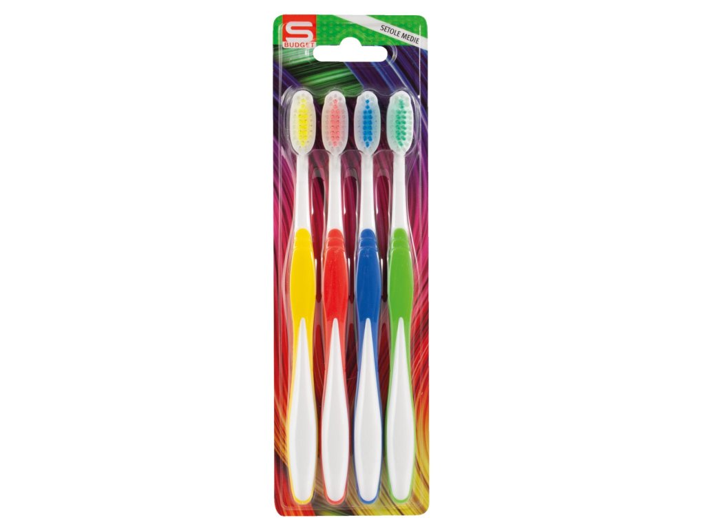S budget rodinné balení zubních kartáčků, 4 ks, střední tvrdost